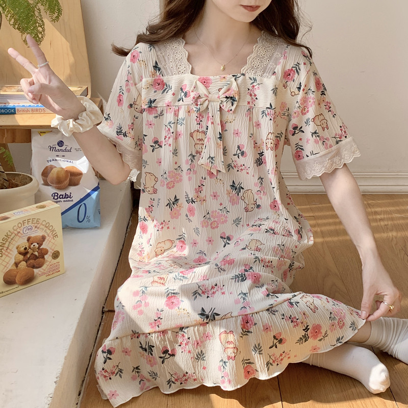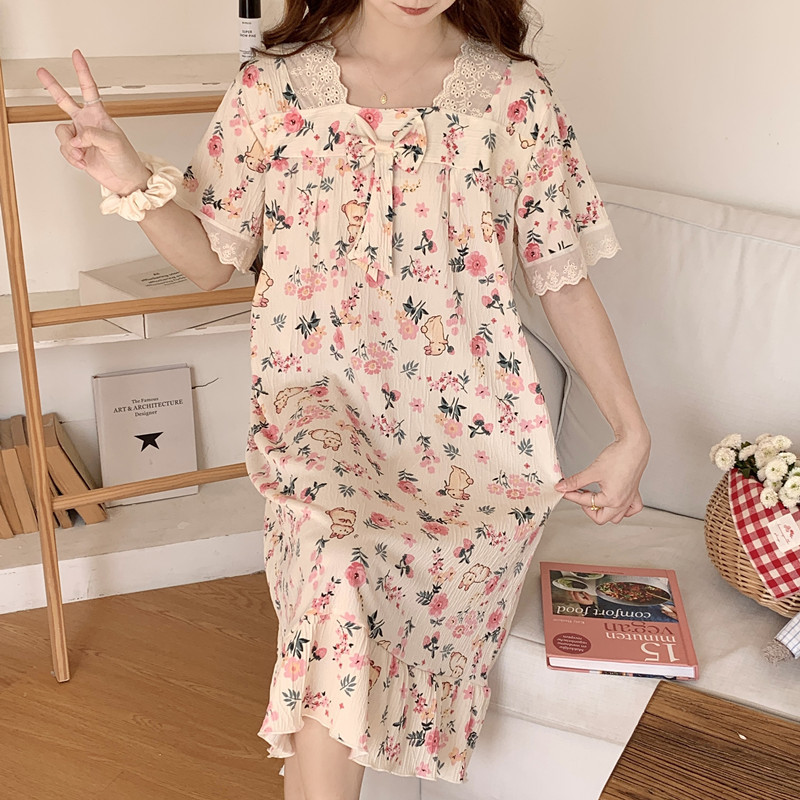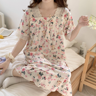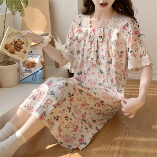 公主风睡衣夏天碎花连衣裙家居服 纯棉纱布短袖 睡裙女夏季 2025新款