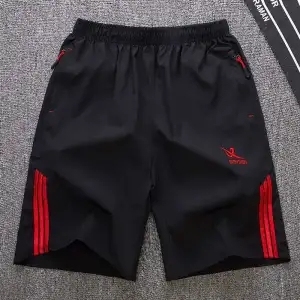 休闲大码 夏季 黑色拉链弹力运动五分裤 男户外沙滩裤 衩 男士 大裤 短裤