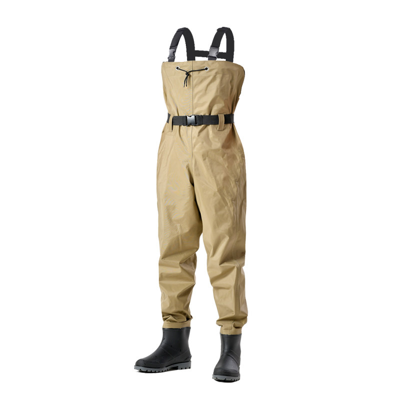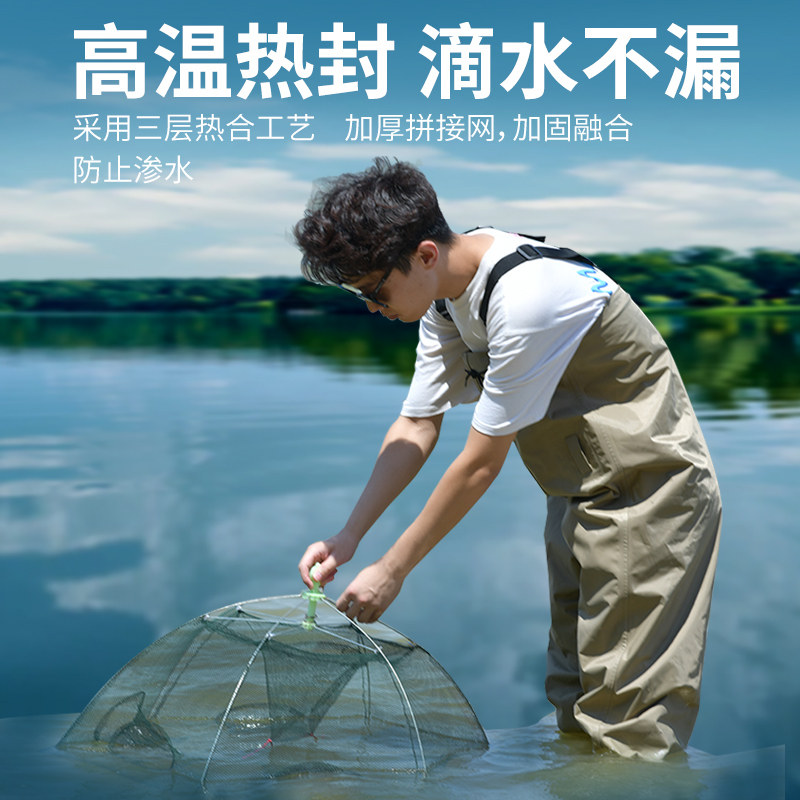 路亚钓鱼防水衣服半身连体男皮叉捕抓鱼全身加厚鞋 尼龙下水裤 雨裤