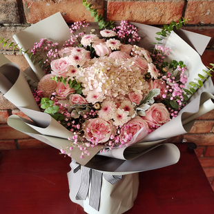 跨新年混搭玫瑰绣球花束鲜花速递同城配送女友生日上海成都全国店