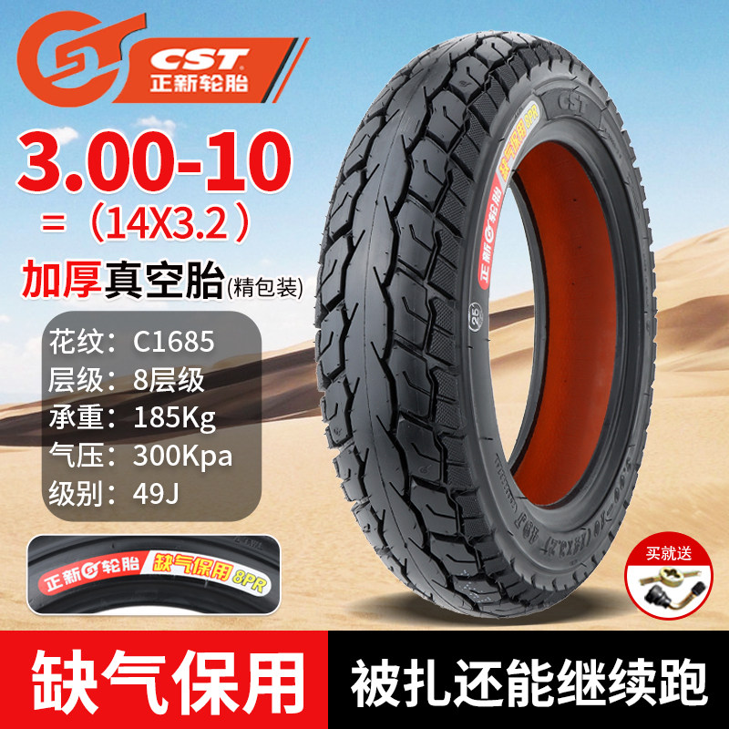 正新轮胎3.00 3.2钢丝胎电瓶车300一10外胎 10电动车真空胎14X2.5