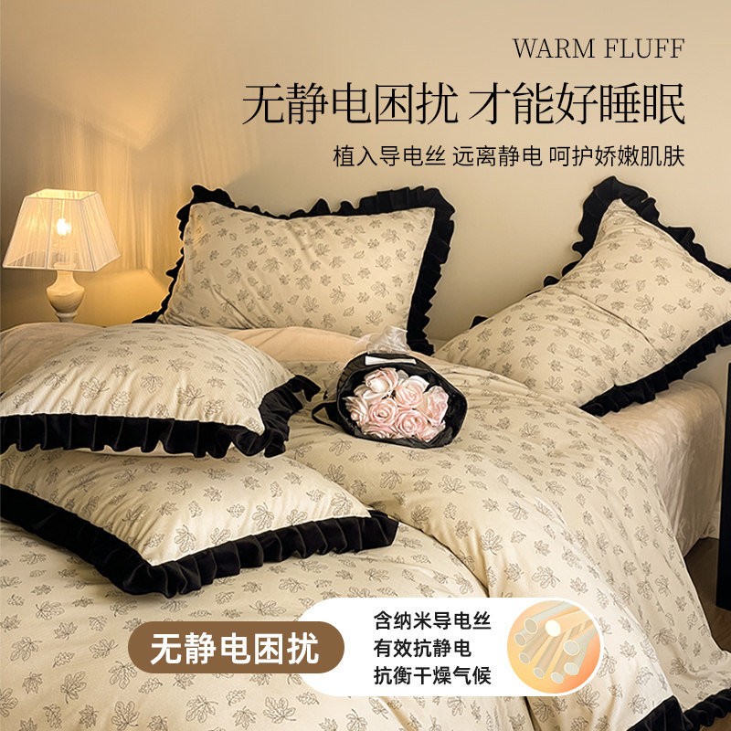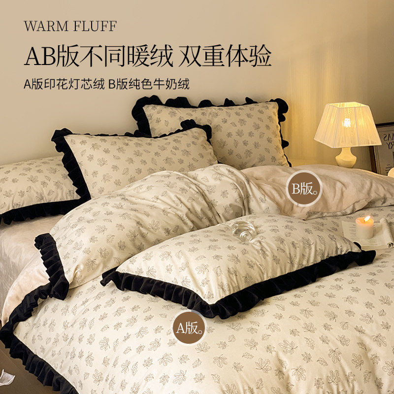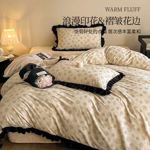 床品 床单轻奢被套秋冬季 法式 灯芯绒床上四件套珊瑚牛奶绒2025新款