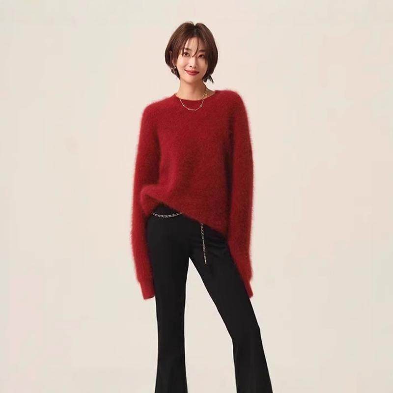 高级感上衣宽松打底针织衫 圆领100%纯山羊绒衫 女高端毛衣秋冬新款