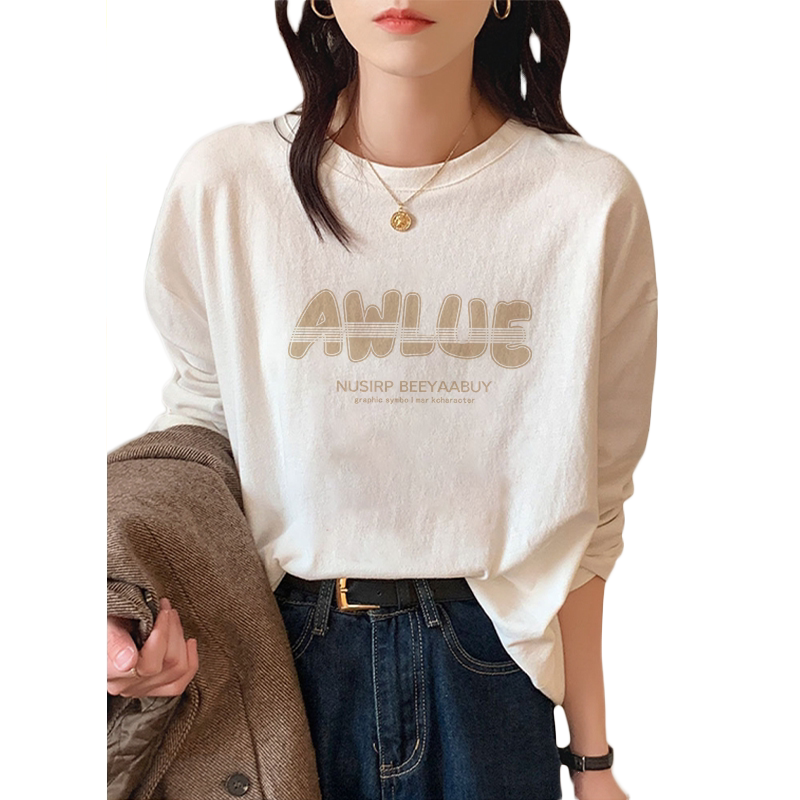 显瘦内搭大码 女2026早秋新款 上衣 t恤纯棉宽松休闲打底衫 白色长袖