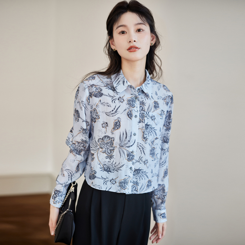 女气质高级感通勤长袖 碎花雪纺衬衫 花色衬衣 新款 风笛2024秋季