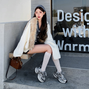 迪丽热巴同款 加绒运动鞋 骆驼银月老爹鞋 冬季 子 女厚底增高女鞋