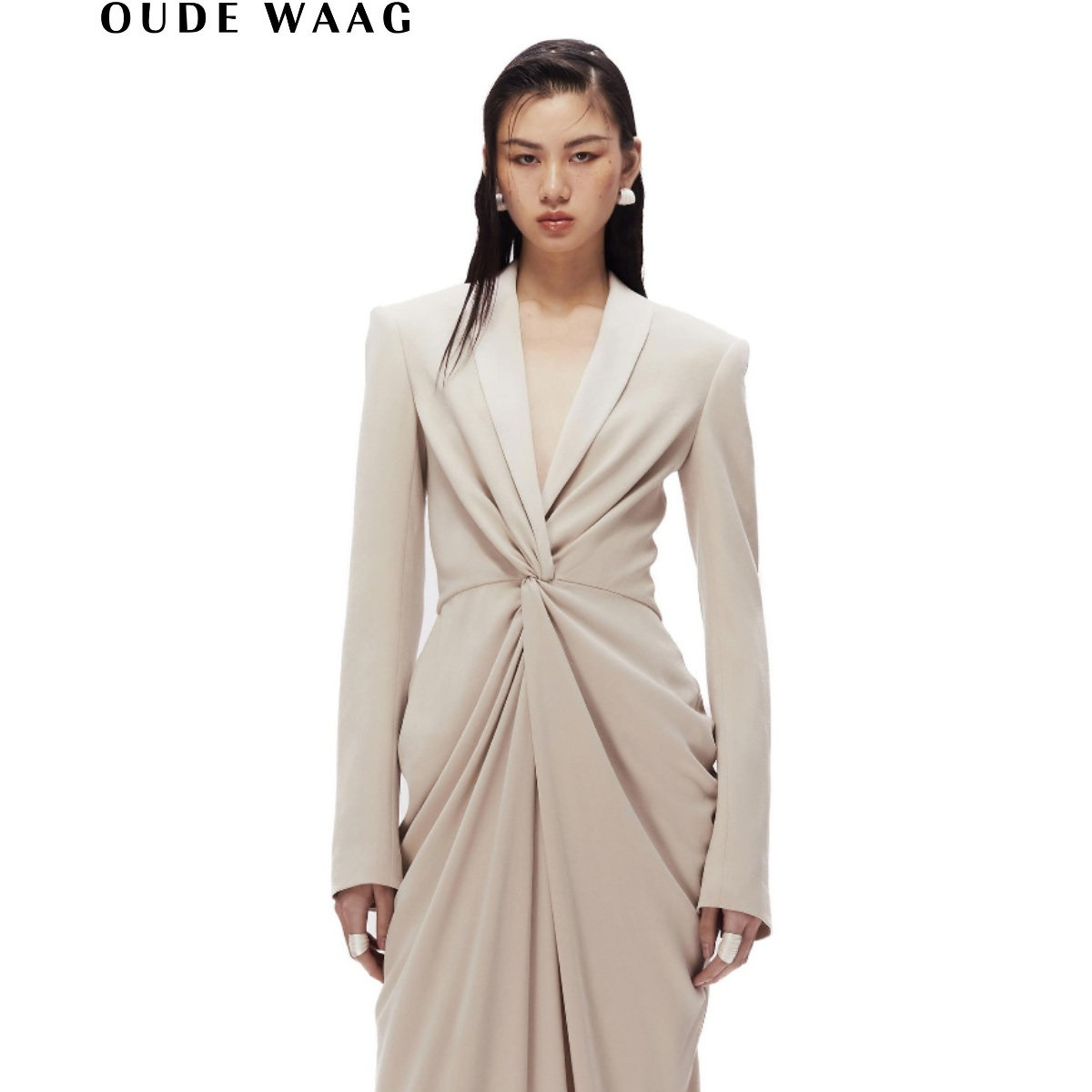 宋佳春晚同款 V领精裁纽结西装 OUDE 经典 礼服裙 WAAG
