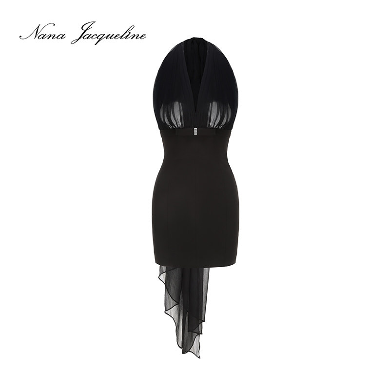NanaJacqueline飘纱系带包臀连衣裙半透性感蝴蝶结短裙 甄选4折