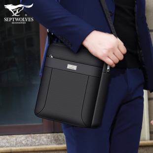七匹狼男士 单肩包大容量休闲斜挎包牛津布包包商务男包帆布小背包