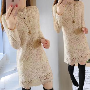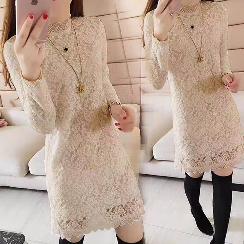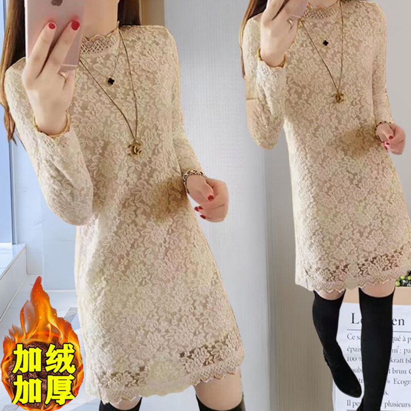 加厚绒蕾丝连衣裙冬季 配大衣打底裙 胖mm小个子遮肚显瘦宽松中长款