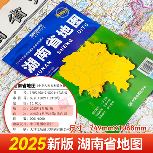 2025年新版 湖南省地图 长沙市城区图市区图 约1.1米X0.8米城市交通路线 社 覆膜折叠便携 旅游出行政区区划 中国地图出版