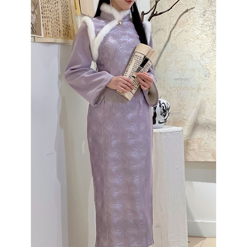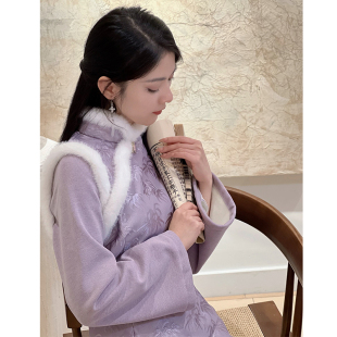紫色新年战袍 加绒加厚改良国风紫芙秋冬女新中式 旗袍2025冬季 新款