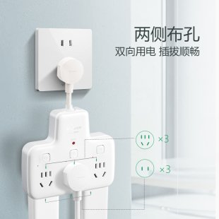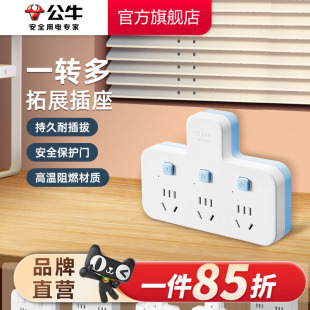 公牛插座一转多分控品字形拓展不带线转换器多功能插排