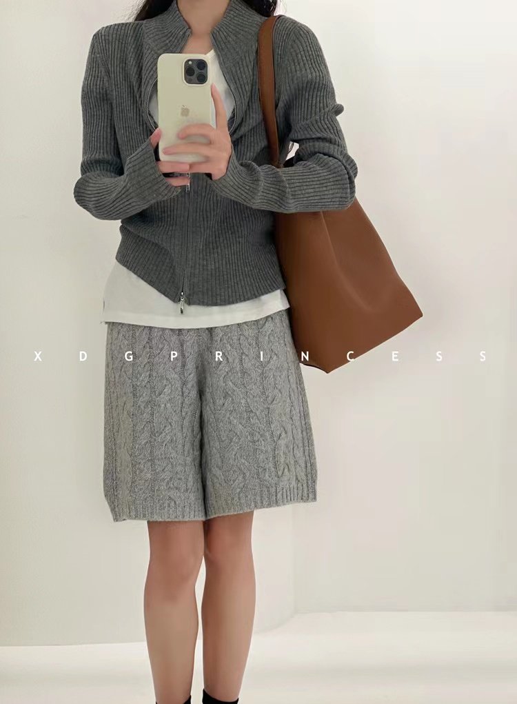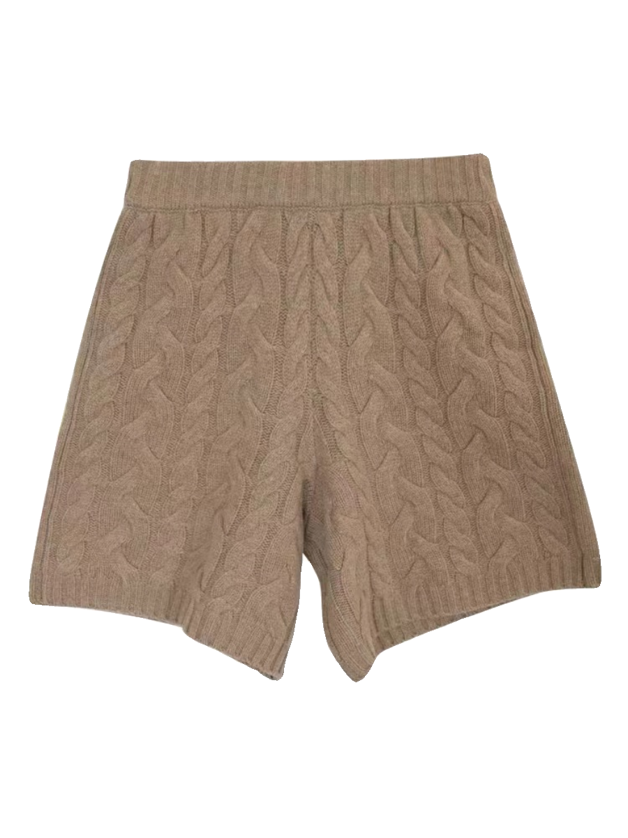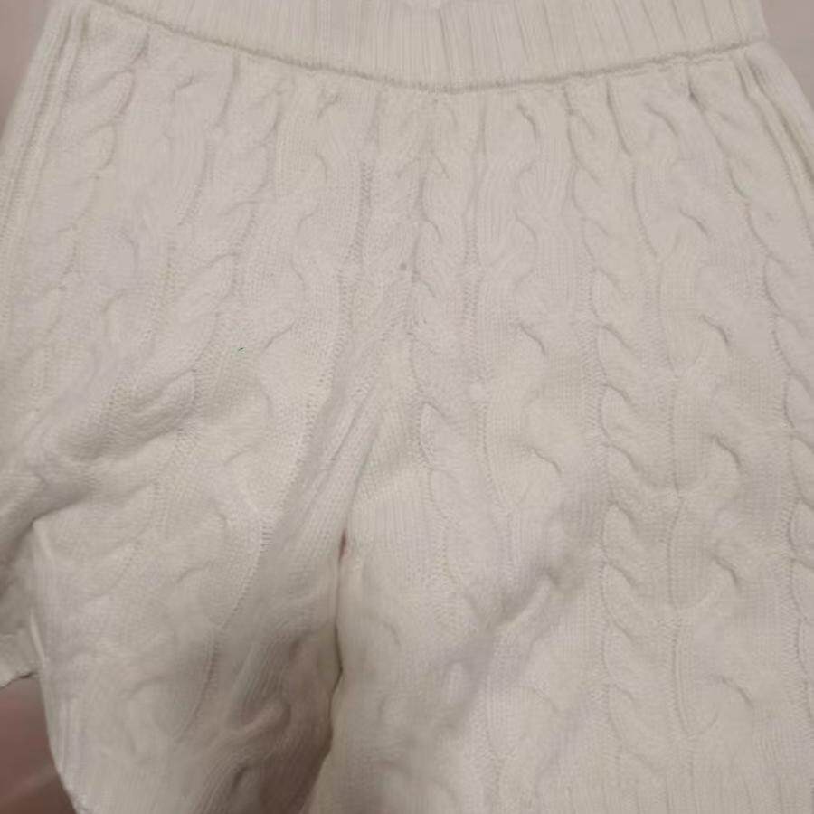 子女外穿秋冬加厚阔腿百 纯羊绒针织休闲短裤 扭花高腰短裤 女五分裤
