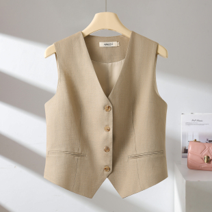 26春夏 无袖 天丝 马甲背心女夏薄款 坎肩马夹小个子 亚麻 AIMUSA