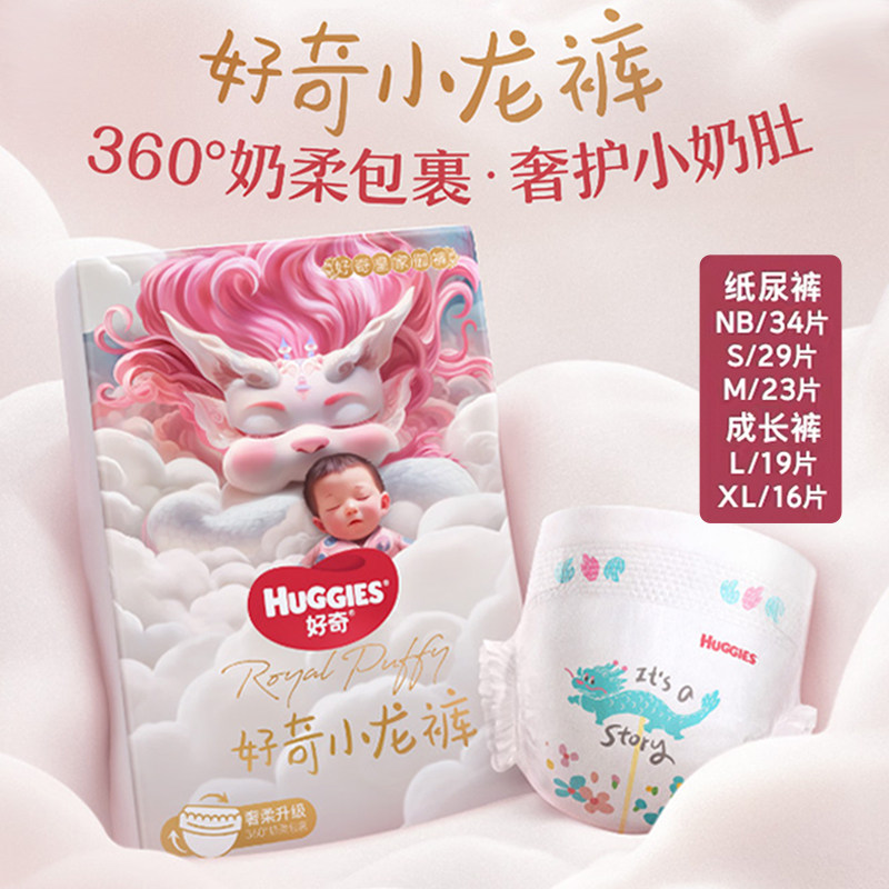 拉拉裤 纸尿裤 婴儿尿不湿超薄透气NB 好奇皇家御裤 MXXXL码 小龙裤
