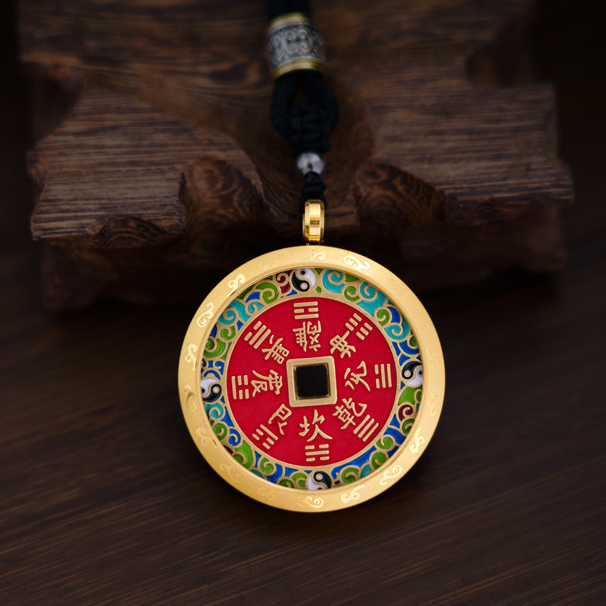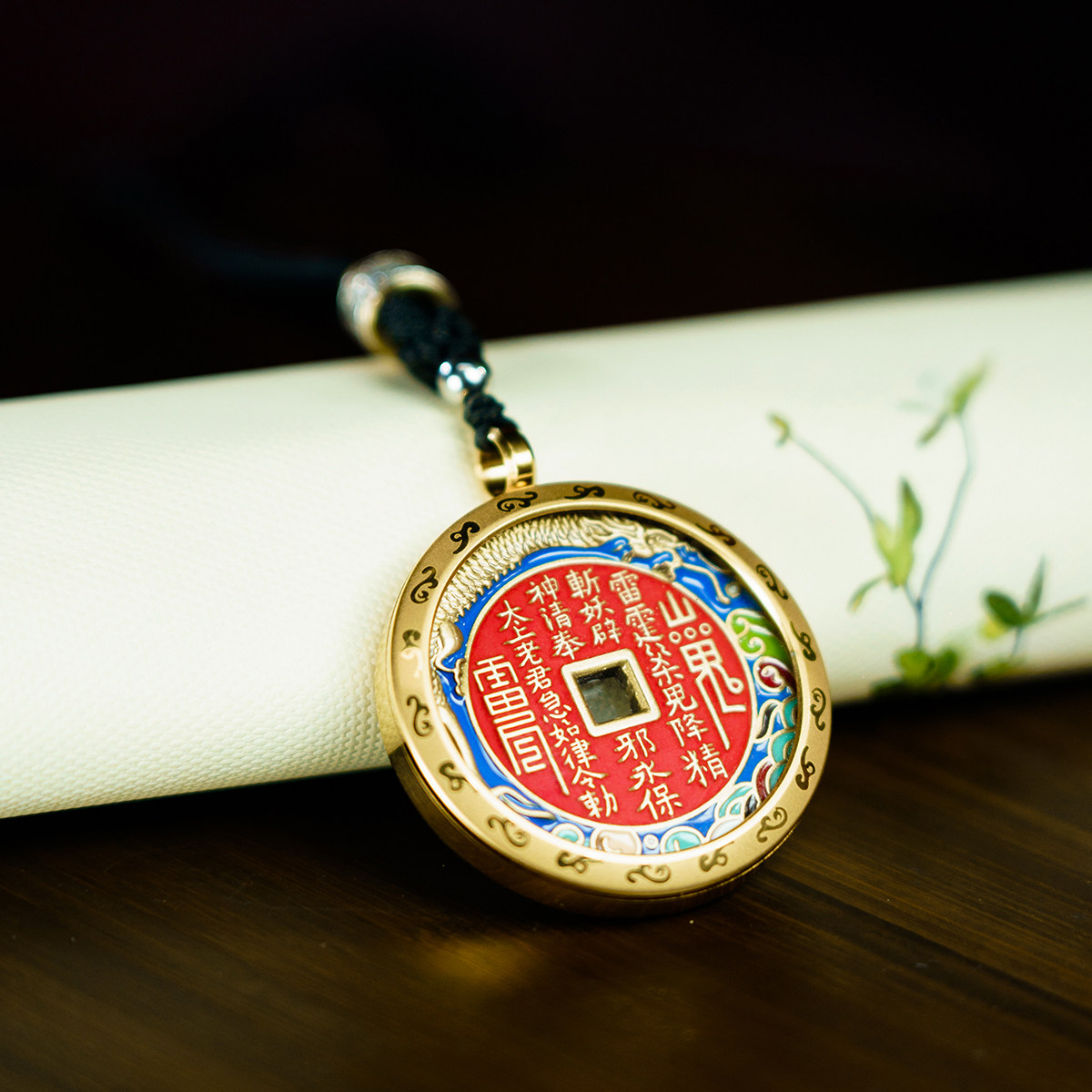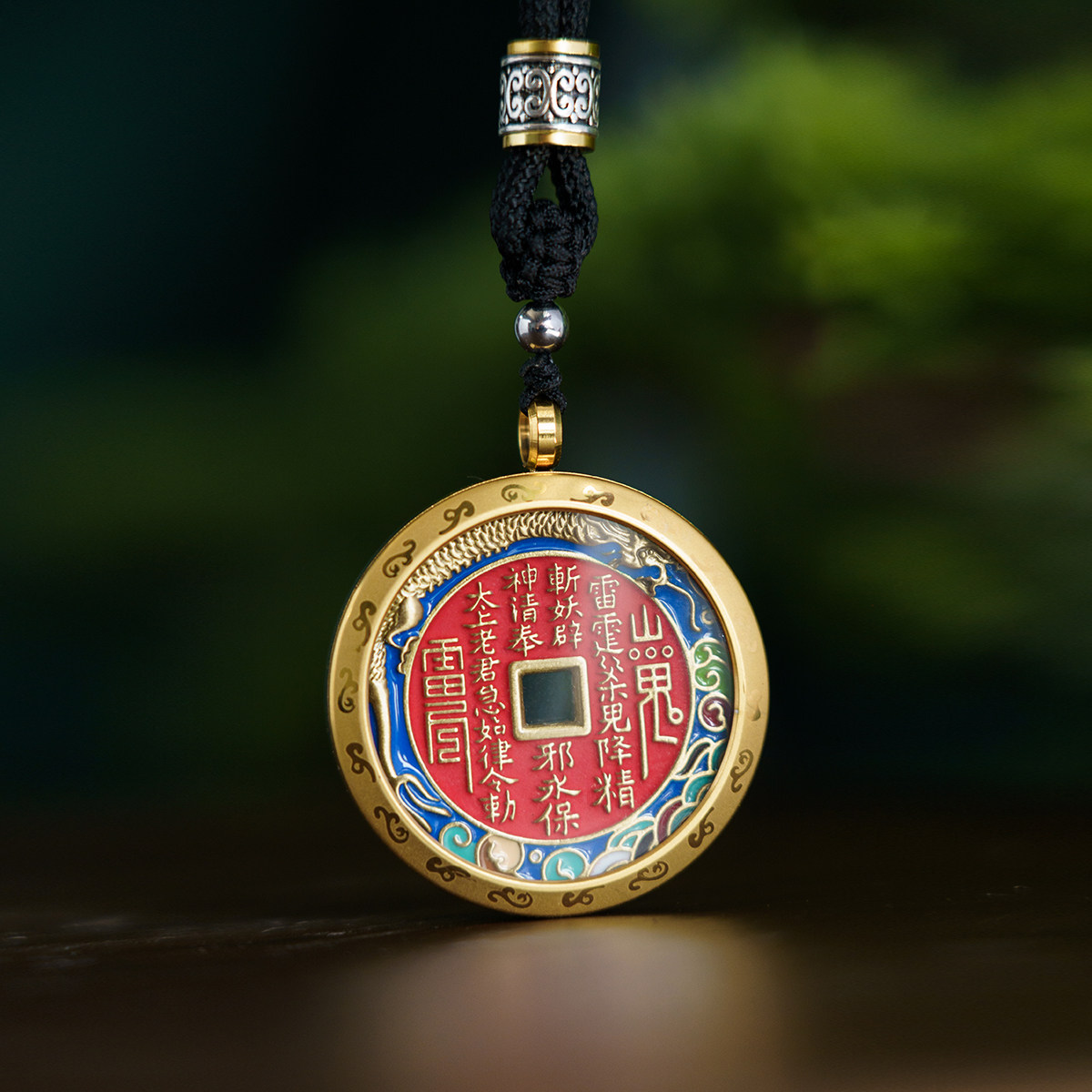 三清山祝福山鬼花钱吊坠纯铜珐琅彩朱砂真品带外壳项链护身符吊坠