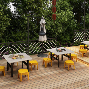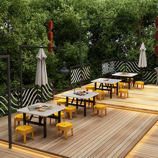 实木岩板商用小吃面馆奶茶食堂咖啡厅麻辣烫餐桌烧烤饭店快餐桌椅