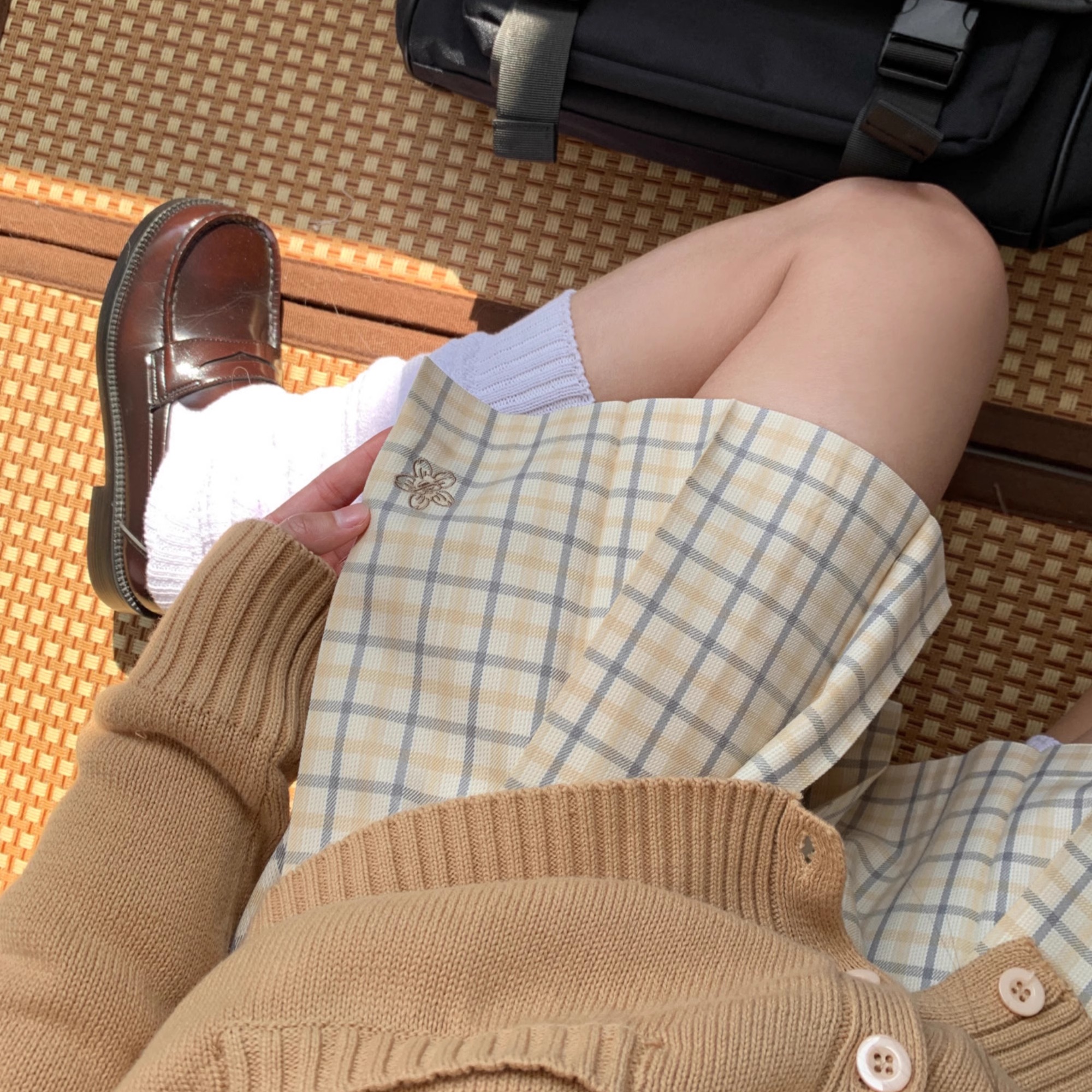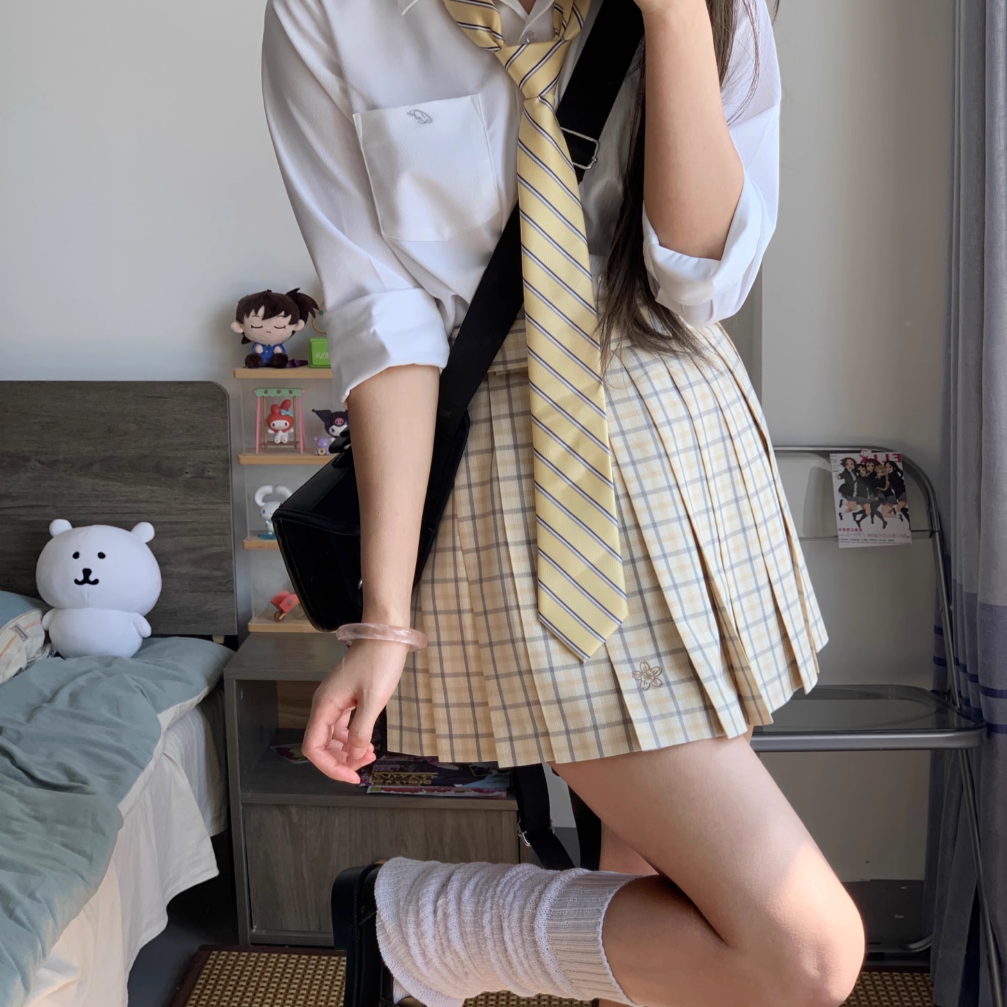 一封信 原创jk格裙黄格校供感日系百褶裙学院风短裙 栀栀