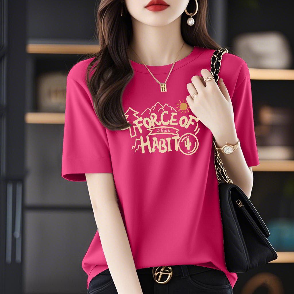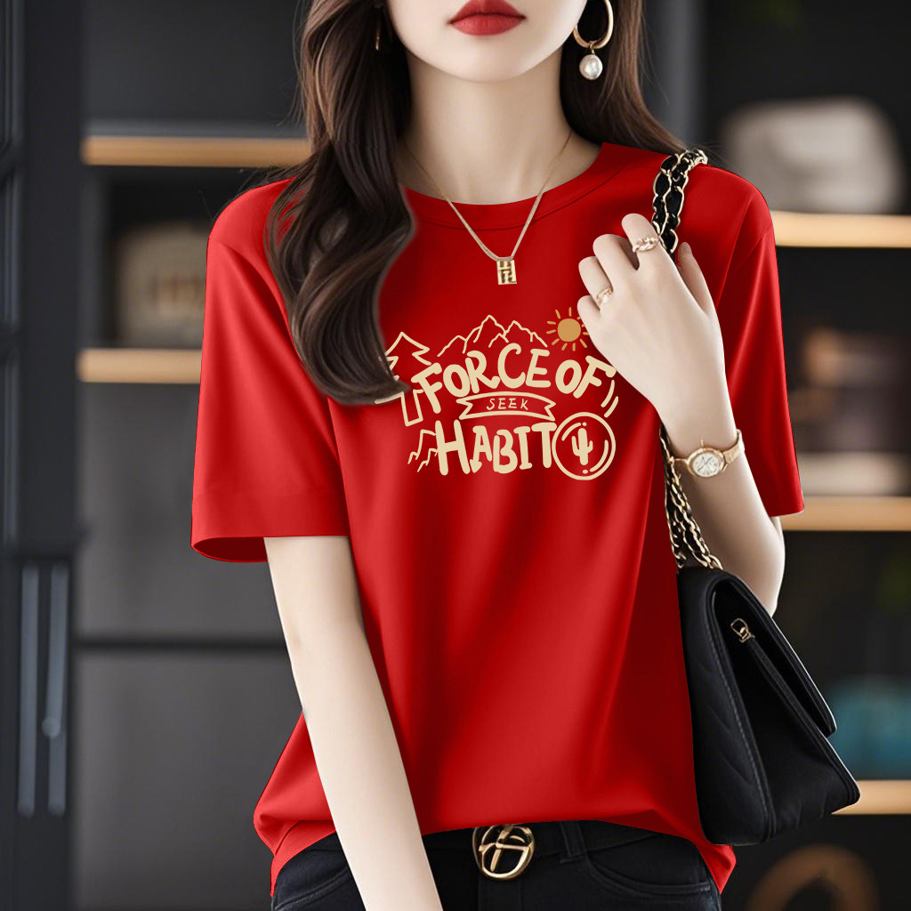 国际名牌专柜即墨纯棉短袖 洋气设计感印花女士宽松体恤 t恤女夏季