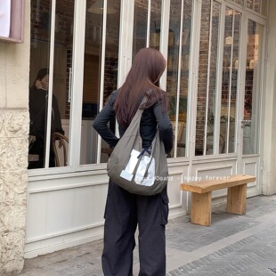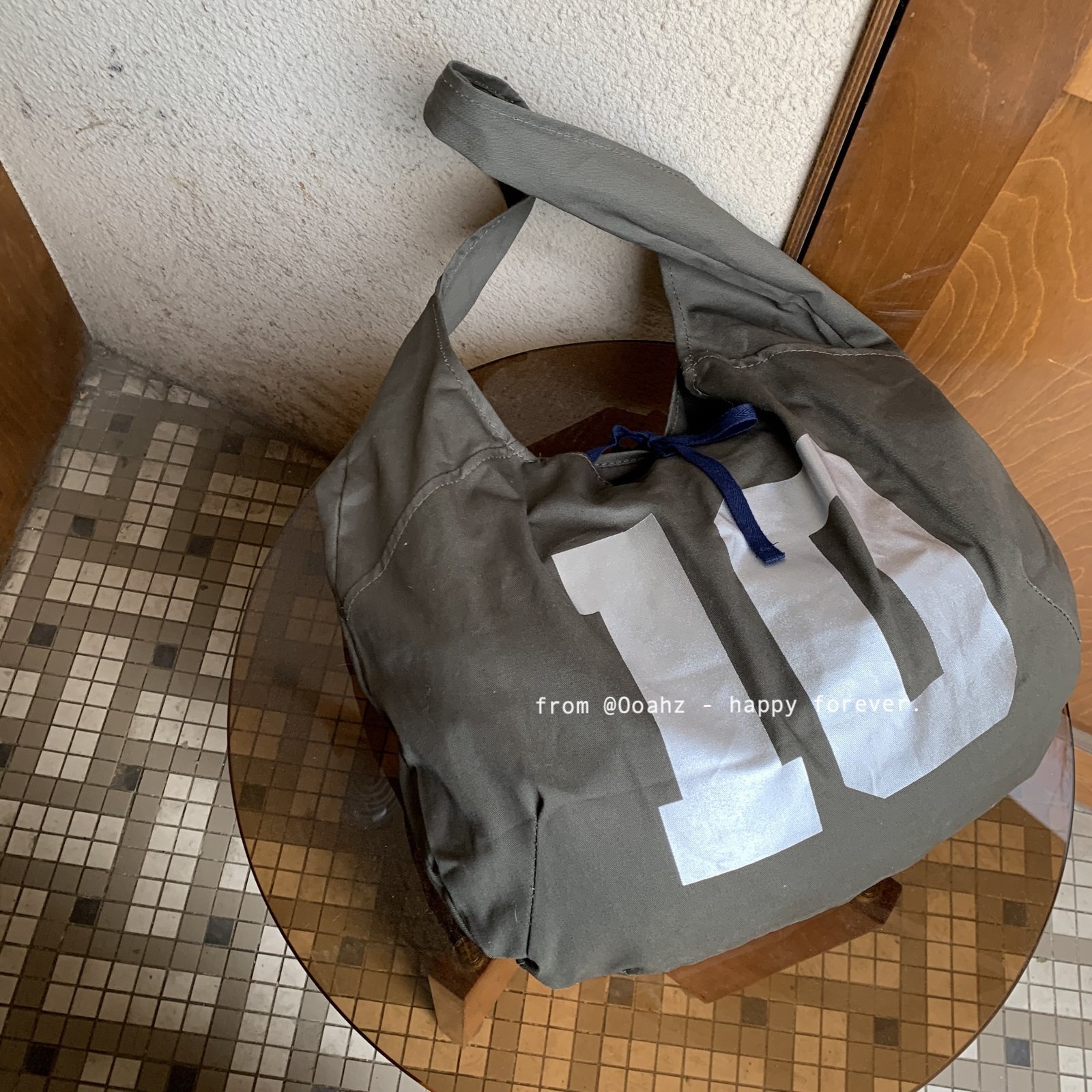 运动风闪亮字体斜跨包帆布包ins女包 军绿色单肩托特包 10号选手
