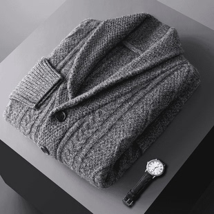 时尚 纯羊毛五针三股线重磅加厚开衫 百搭休闲外套 男士 DJGF2240新款