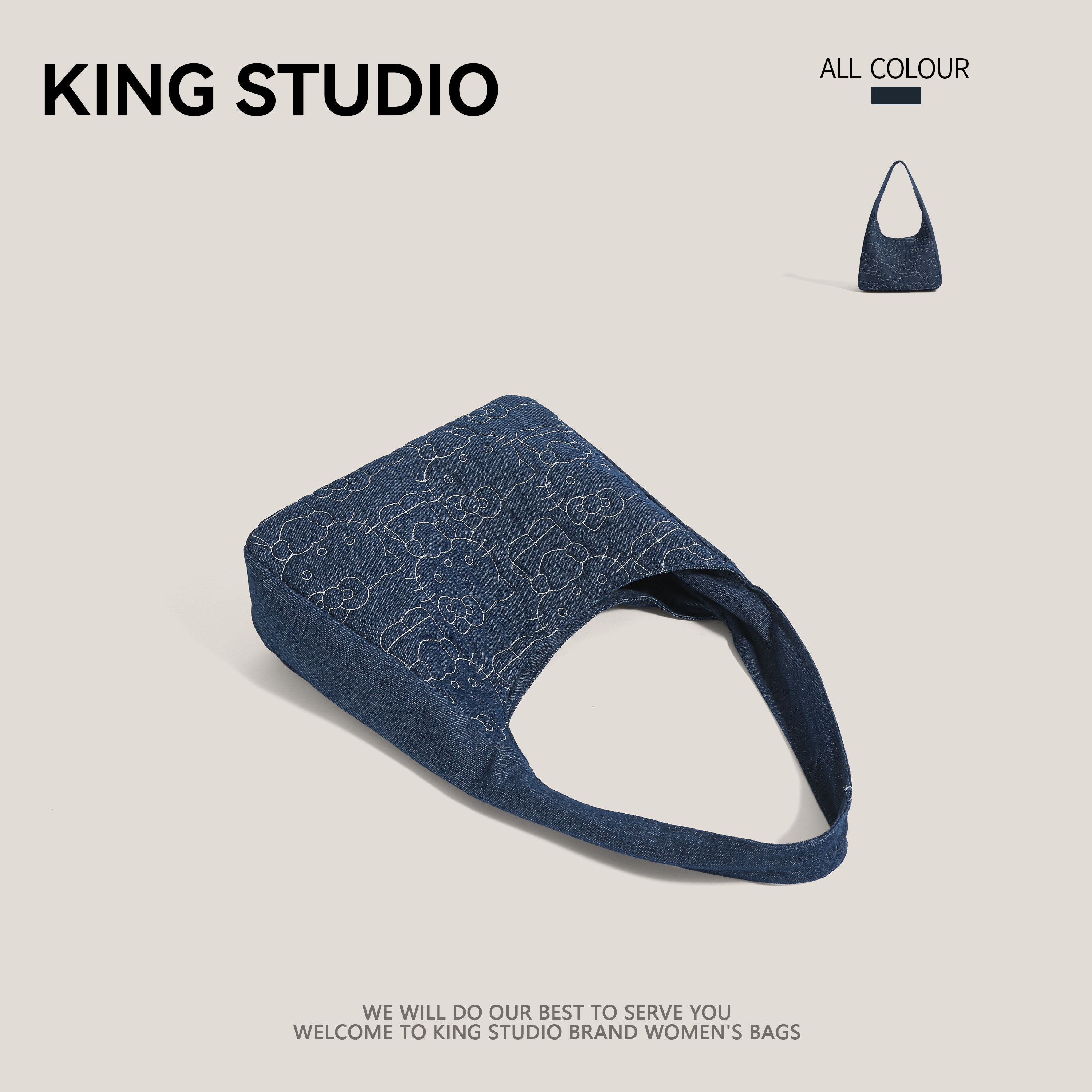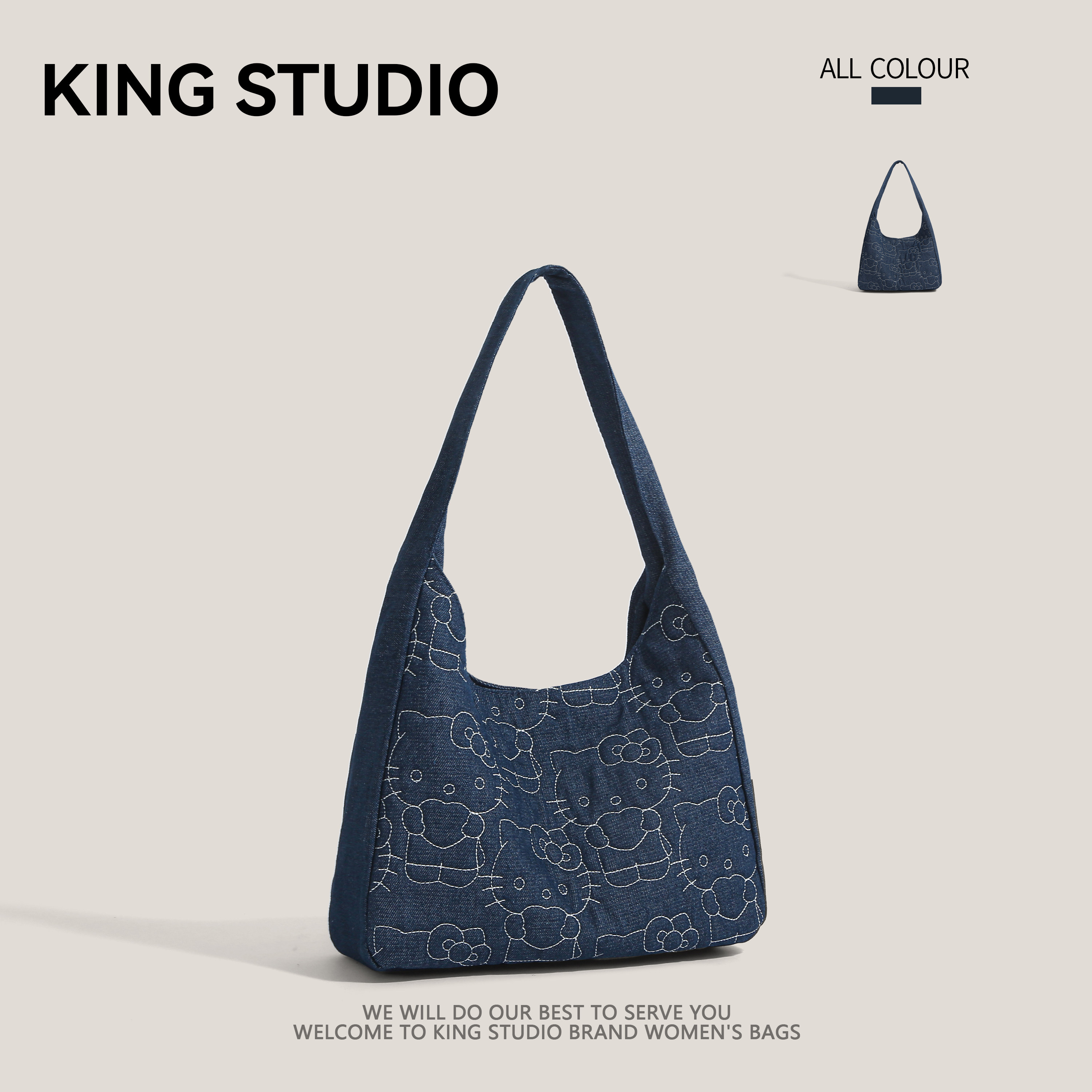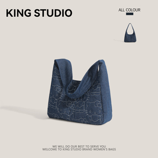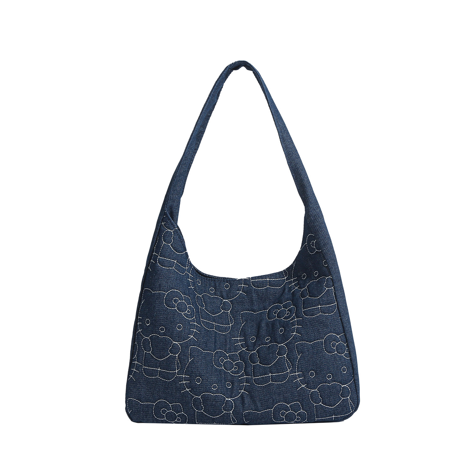 可爱卡通kt猫牛仔包包女2025新款 春夏大容量单肩包学生通勤托特包