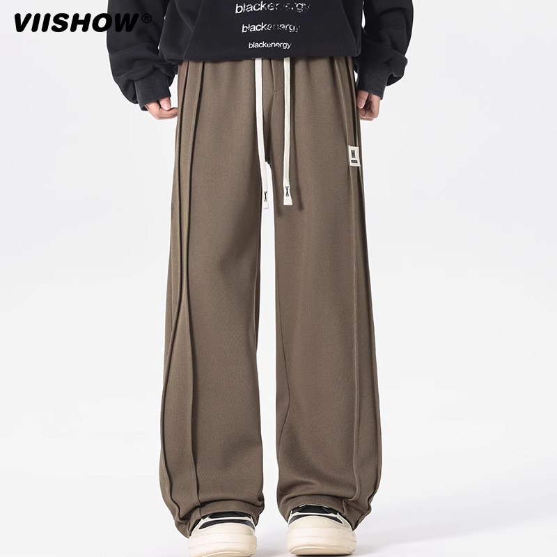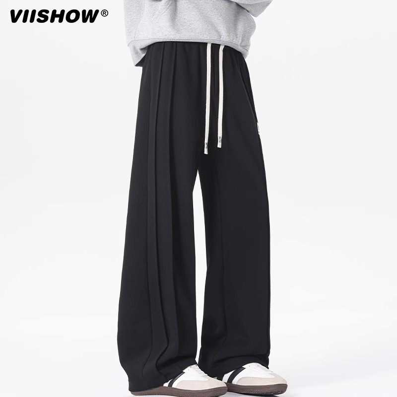 悟空有货街头复古纯色垂感弯刀运动裤 男潮牌宽松灰色百搭休闲卫裤