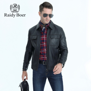 雷迪波尔男装 绵羊皮商务休闲翻领真皮夹克上衣 皮衣外套男春秋新款
