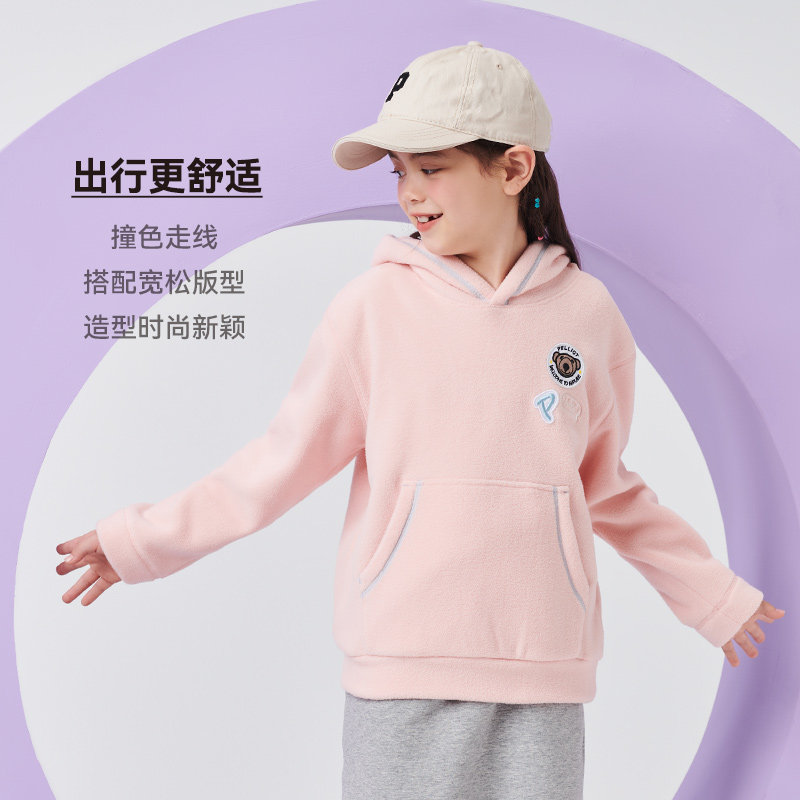 伯希和户外抓绒衣保暖套头卫衣新款 男女童摇粒绒外套休闲连帽卫衣