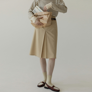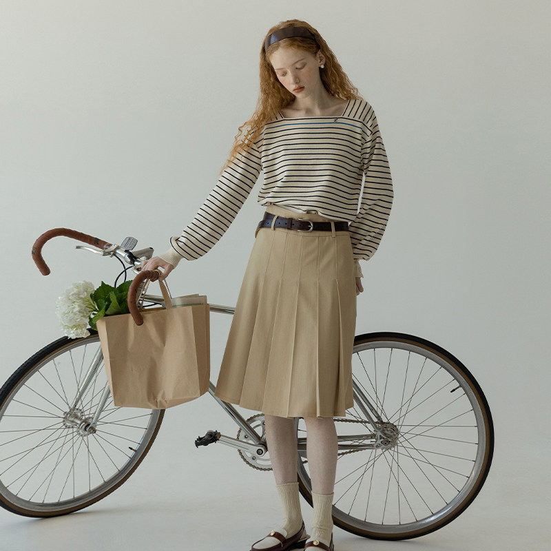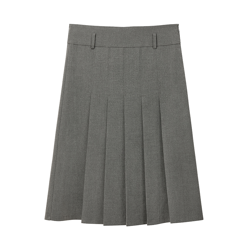 LLANO中腰两面穿百褶裙复古学院风气质A字裙半身裙中长款 裙子夏春