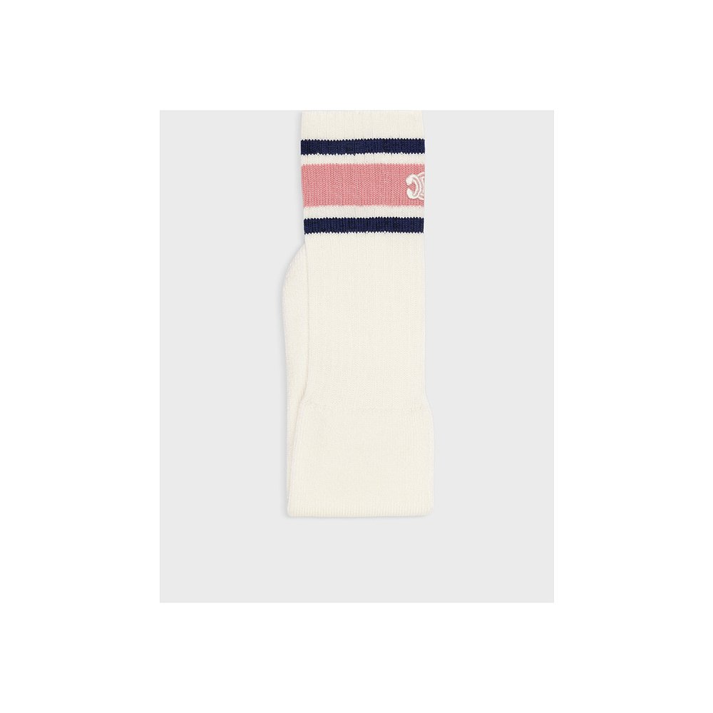 香港直邮Celine 2A47V289Q.中筒袜女袜条纹袜 logo嵌花针织袜子