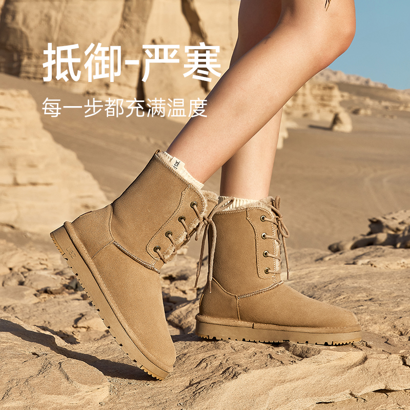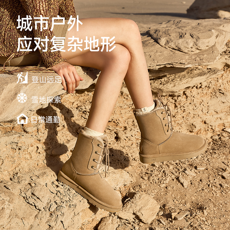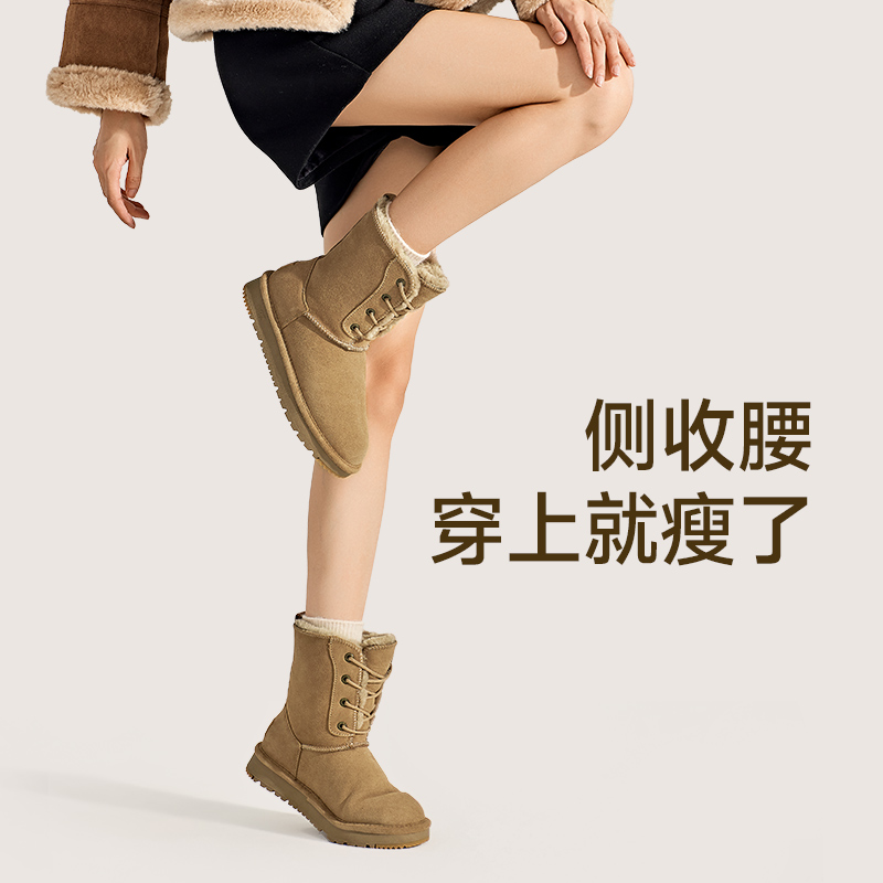 面包鞋 UBZ 加绒加厚防滑系带棉鞋 新款 防水雪地靴女中筒2025年冬季