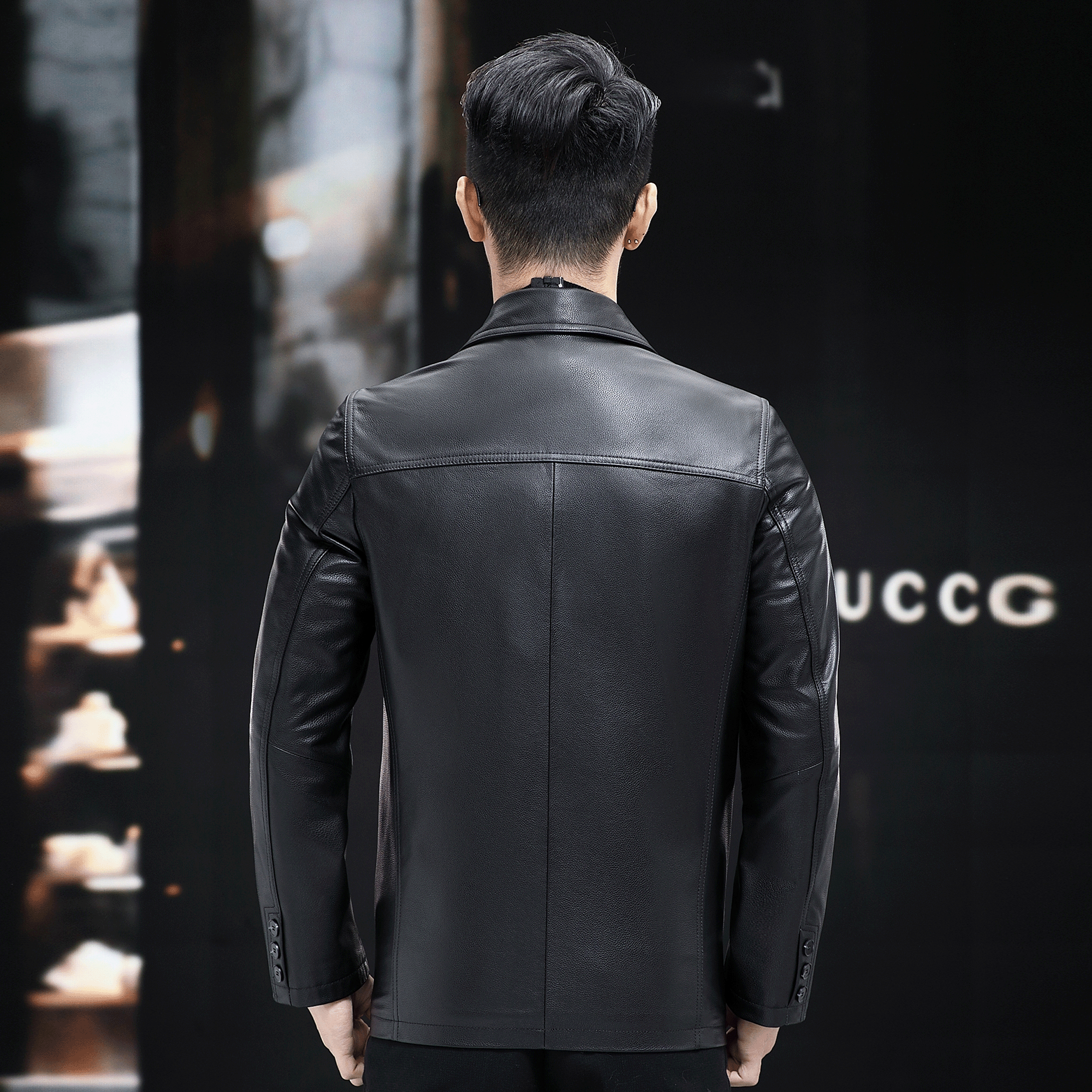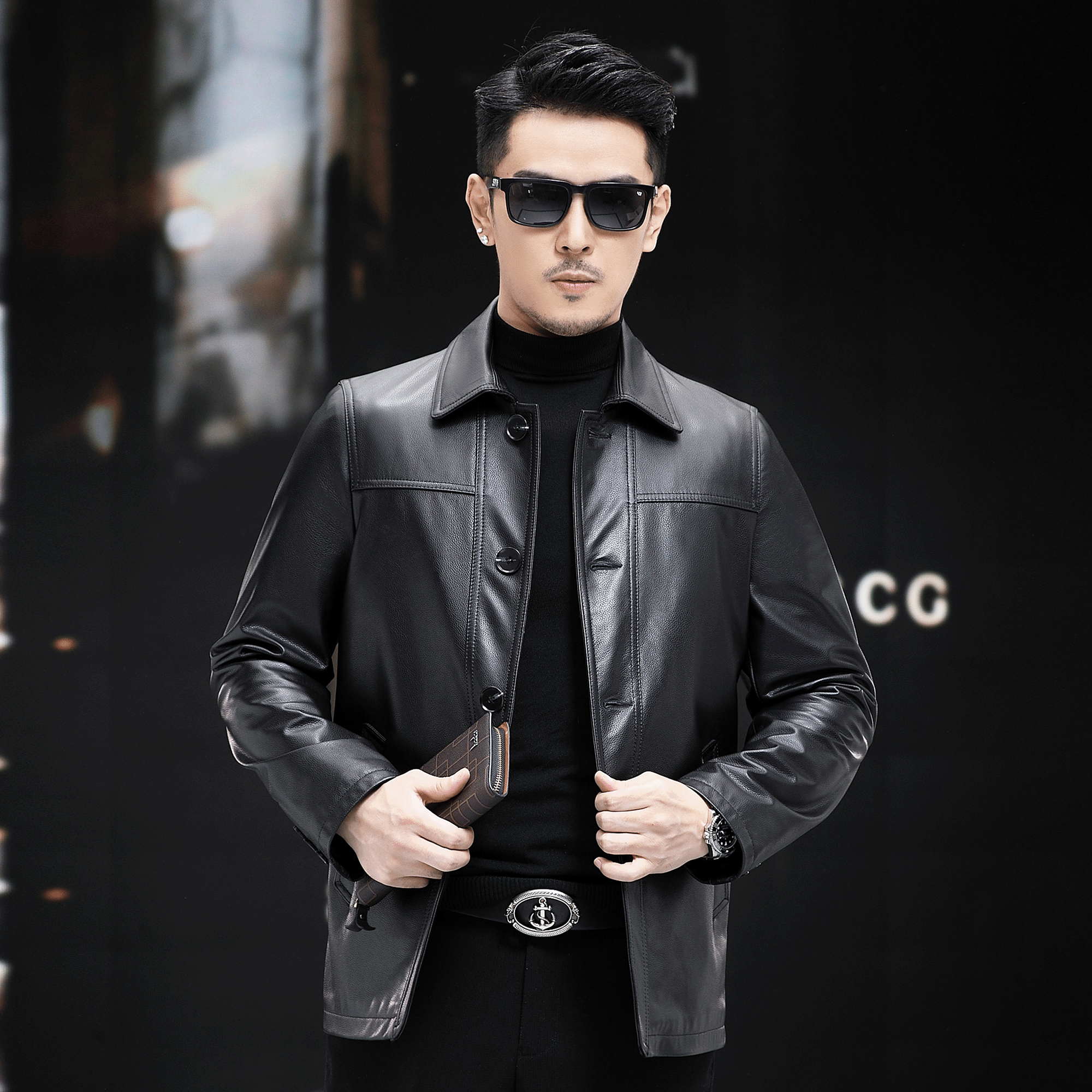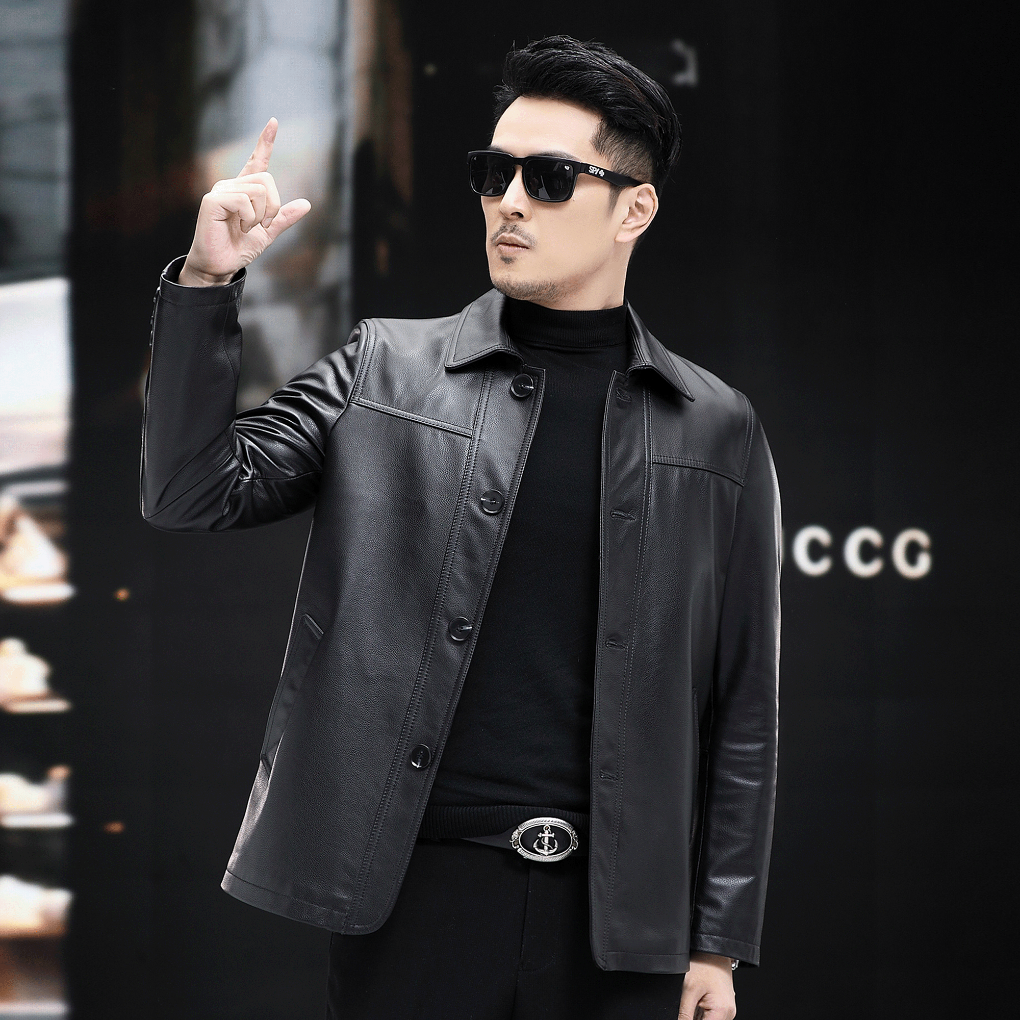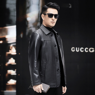 厂家直销8190男士 真皮皮衣黑色头层牛皮翻领商务休闲春秋爸爸装