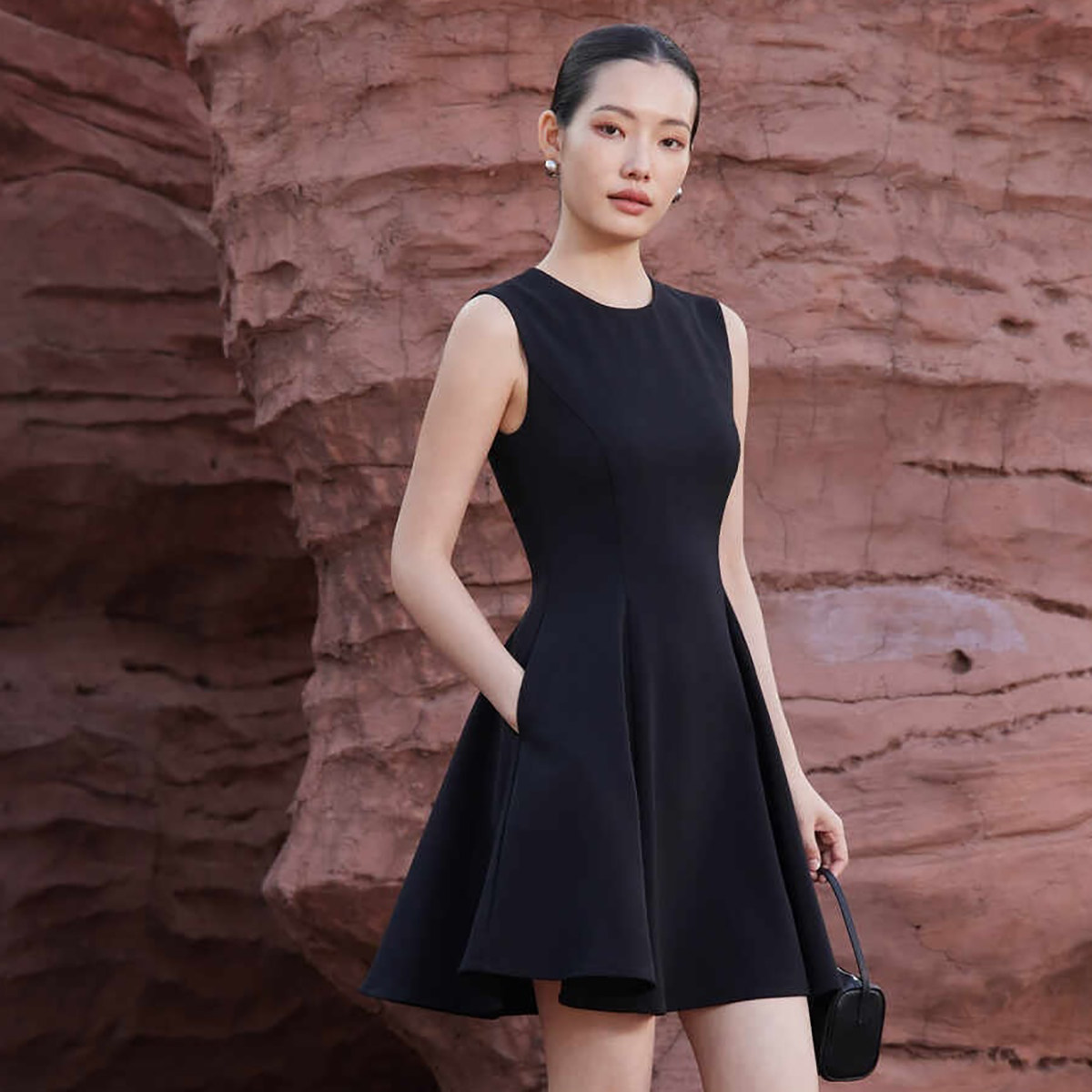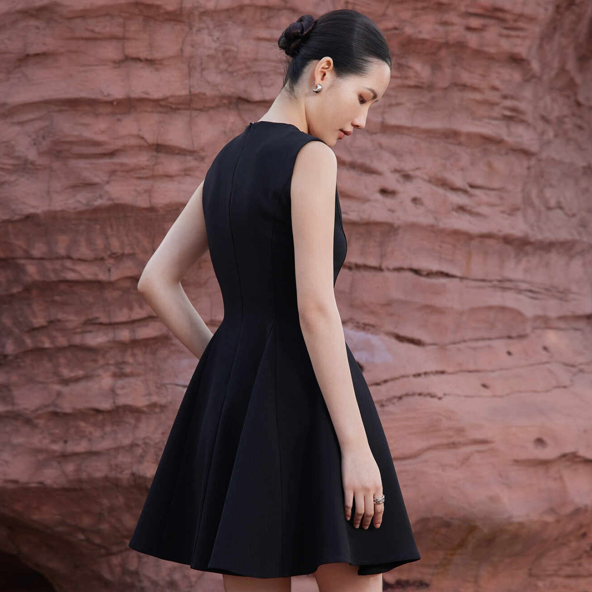 小黑裙3203 经典 極简立裁 垂感弹力剪裁赫本复古背心连衣裙无袖