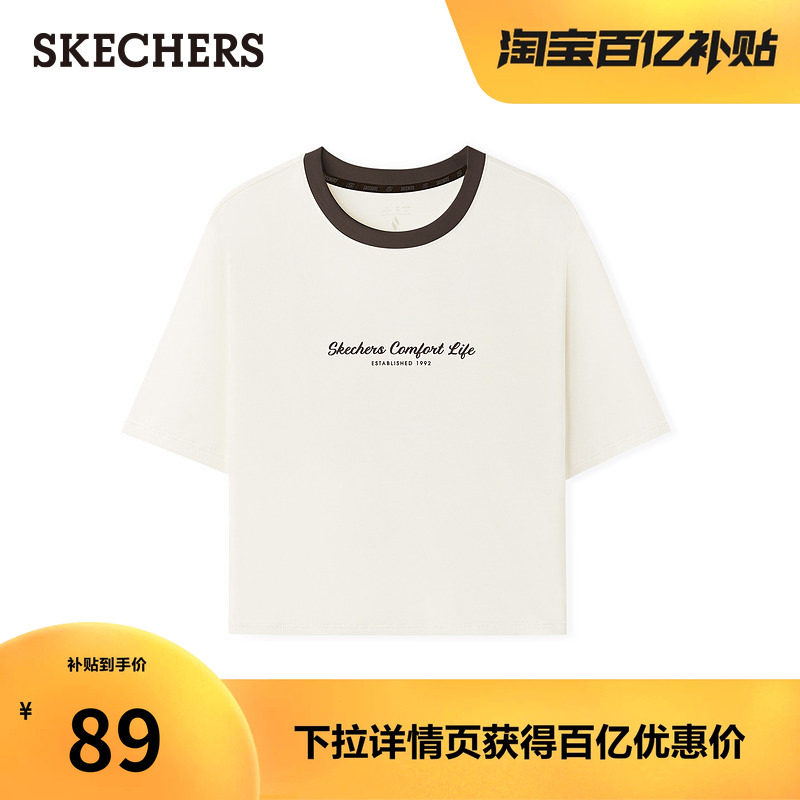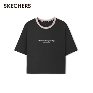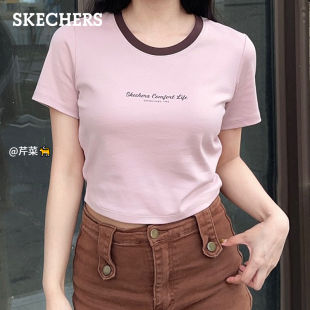 时尚 短款 短袖 潮流T恤撞色领口针织上衣韩版 斯凯奇新款 打底衫 女款