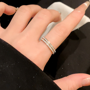 suzyacc kr虎眼石水钻双层戒指小众设计复古高级感食指戒质感指环