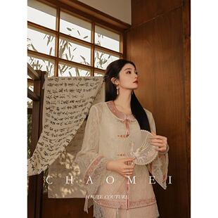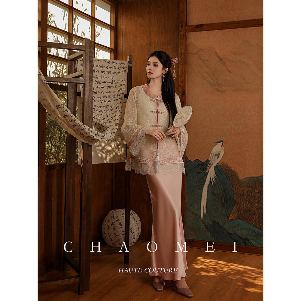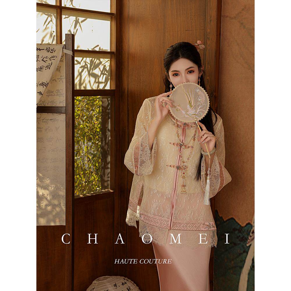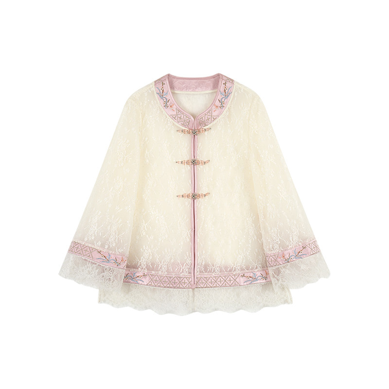 新中式 MOPASSANT 长袖 米色外套显瘦蕾丝衫 粉黛玉