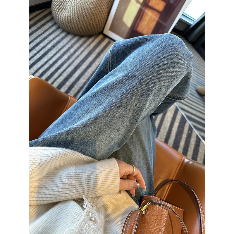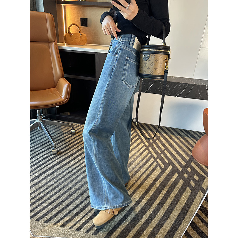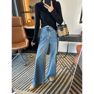 高腰垂感牛仔裤 梨形必入 新款 女2026春季 宽松大阔腿喇叭牛仔裤