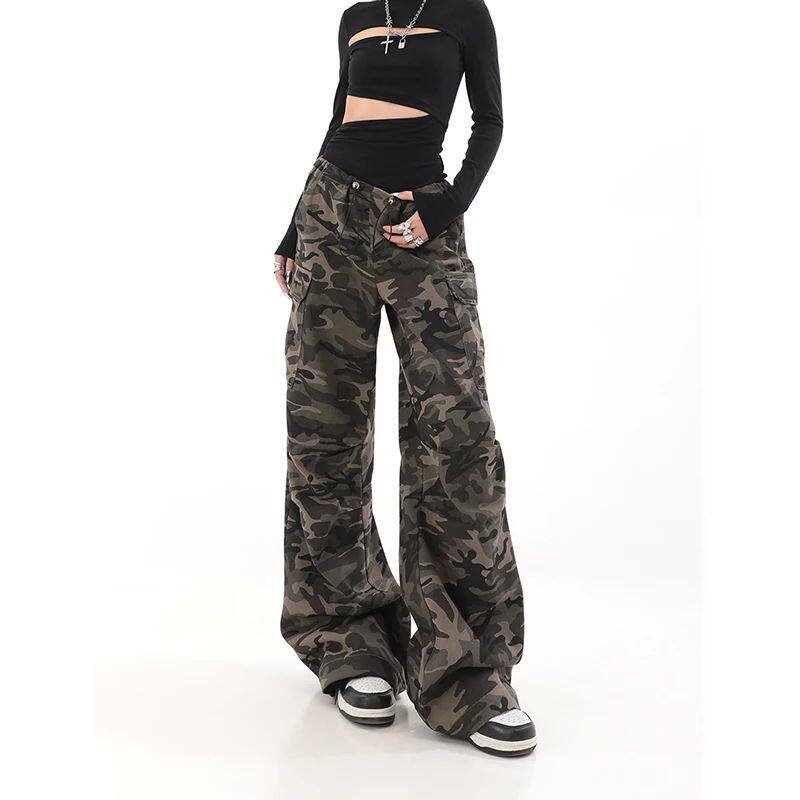 裤 work 女Loose camouflage pants straight 宽松直筒拖地迷彩工装