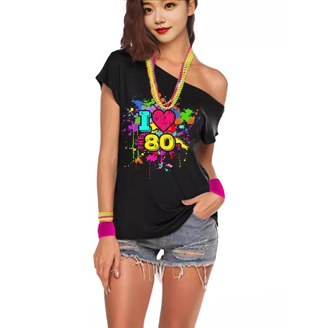 Splashed Graffiti Paint Oblique Short Sentiment Neck