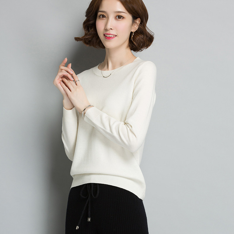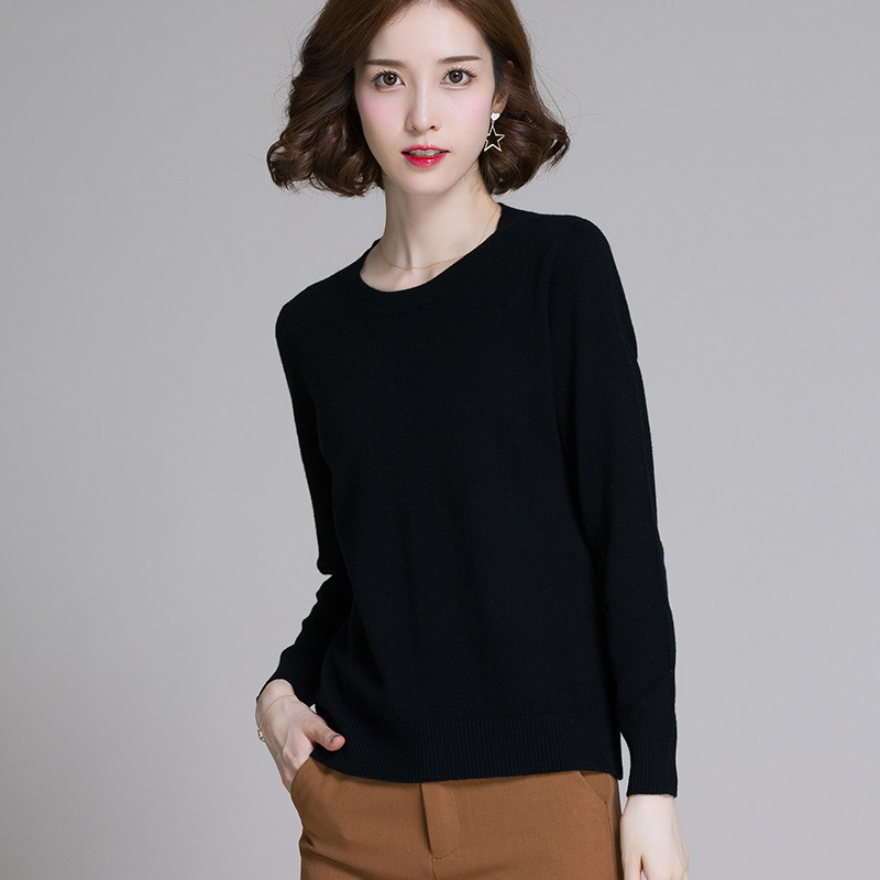 新款 清仓特价 女美丽诺纯羊毛衫 宽松针织衫 秋冬 圆领纯色打底衫