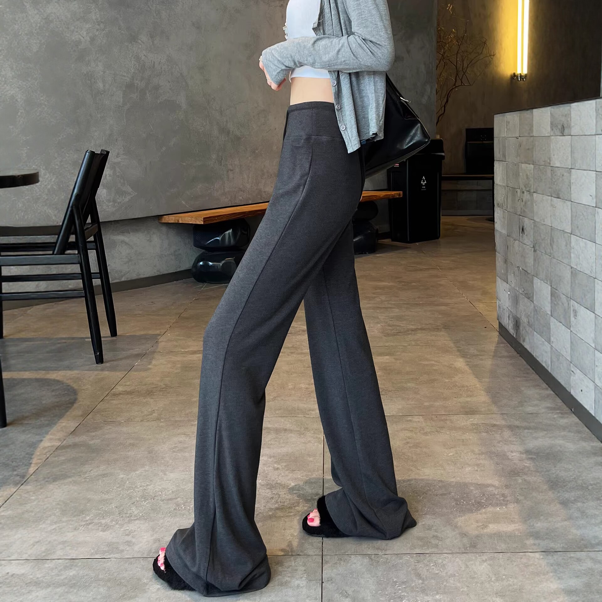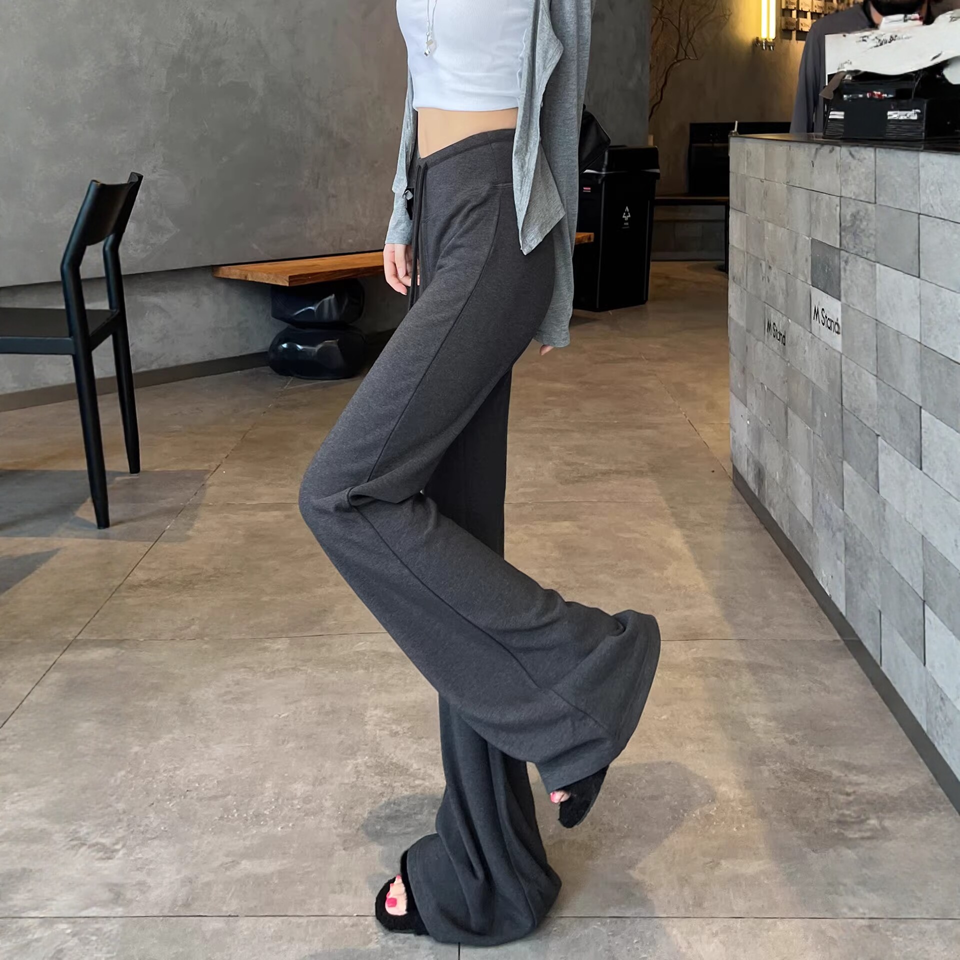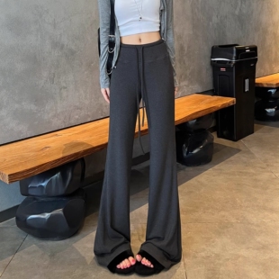 抽绳高腰显瘦直筒瑜伽裤 高个子加长深灰色微喇卫裤 女春秋2026新款