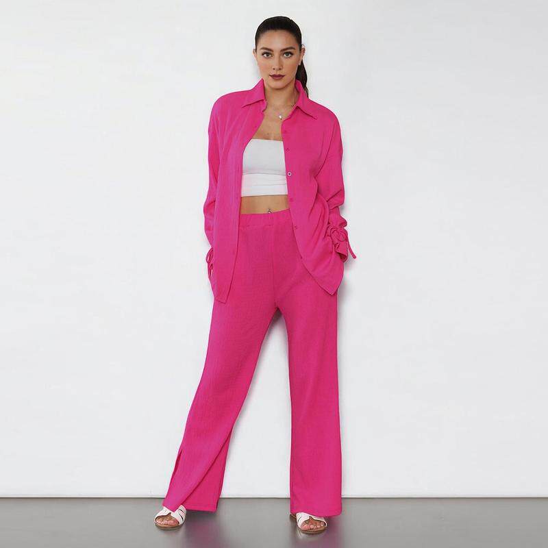 Solid Casual Color Button Sleeve Women Flounce