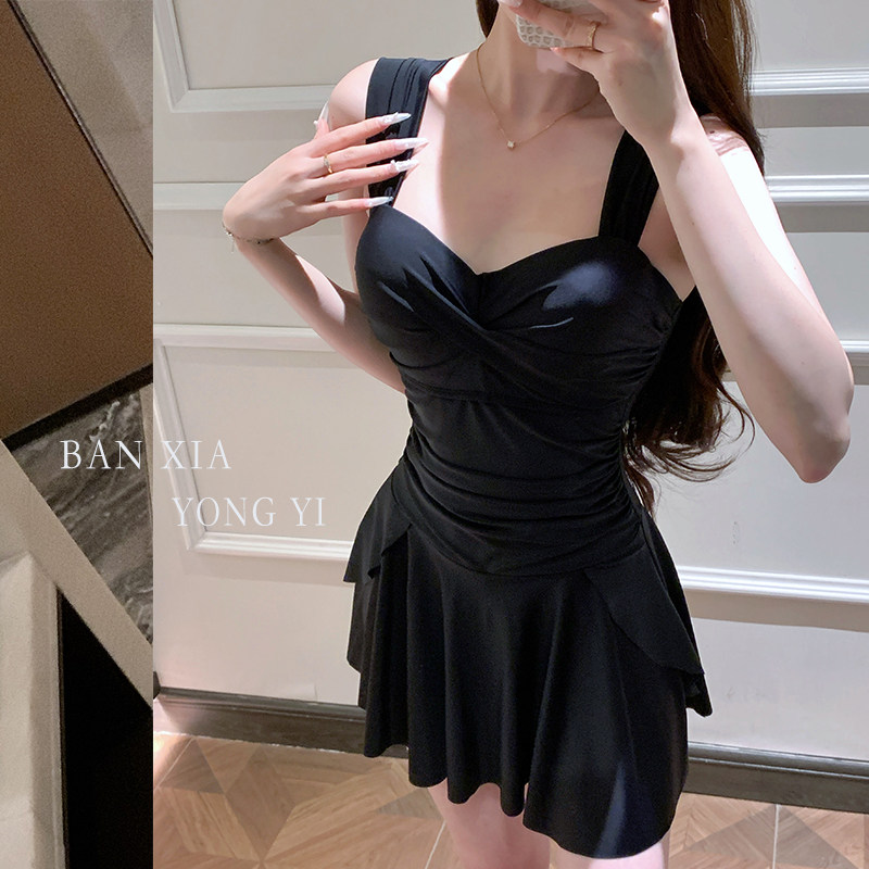 2026年新款 连体泳衣女高级感微胖女孩遮肉显瘦泡温泉保守泳衣裙式