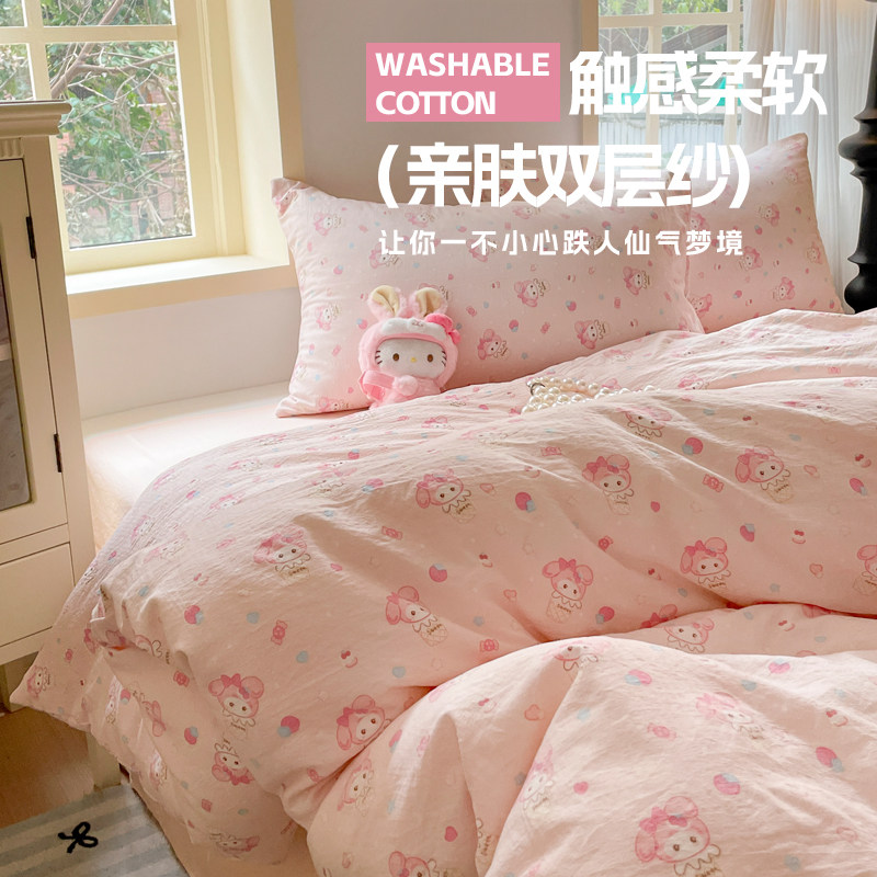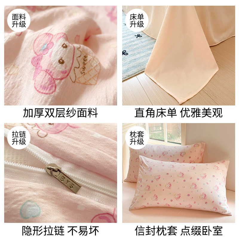 A类双层纱床上四件套2026新非纯棉全棉被套学生宿舍床单三件套夏4