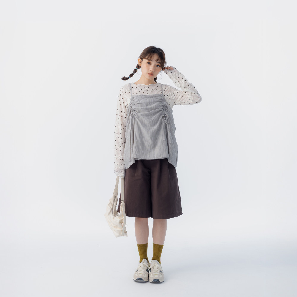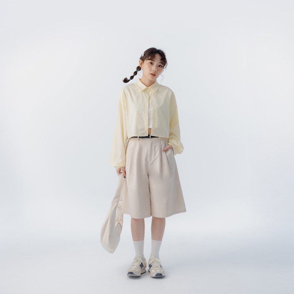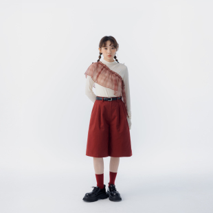 简约素面斜纹五分裤 女装 附皮带04102034 2026春夏新品 QUEENSHOP