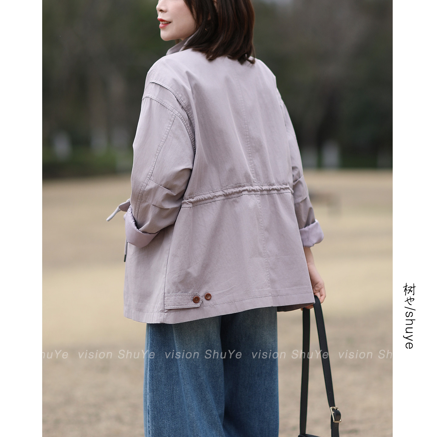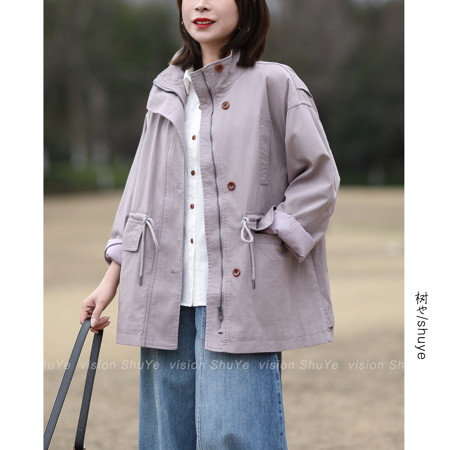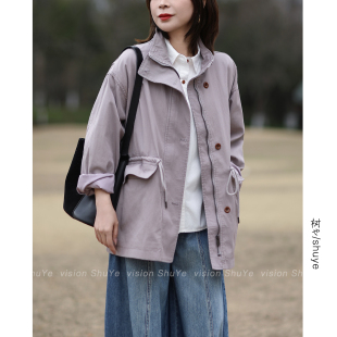 2026春装 抽绳收腰工装 新款 休闲宽松中长款 风衣外套女 韩版 树也