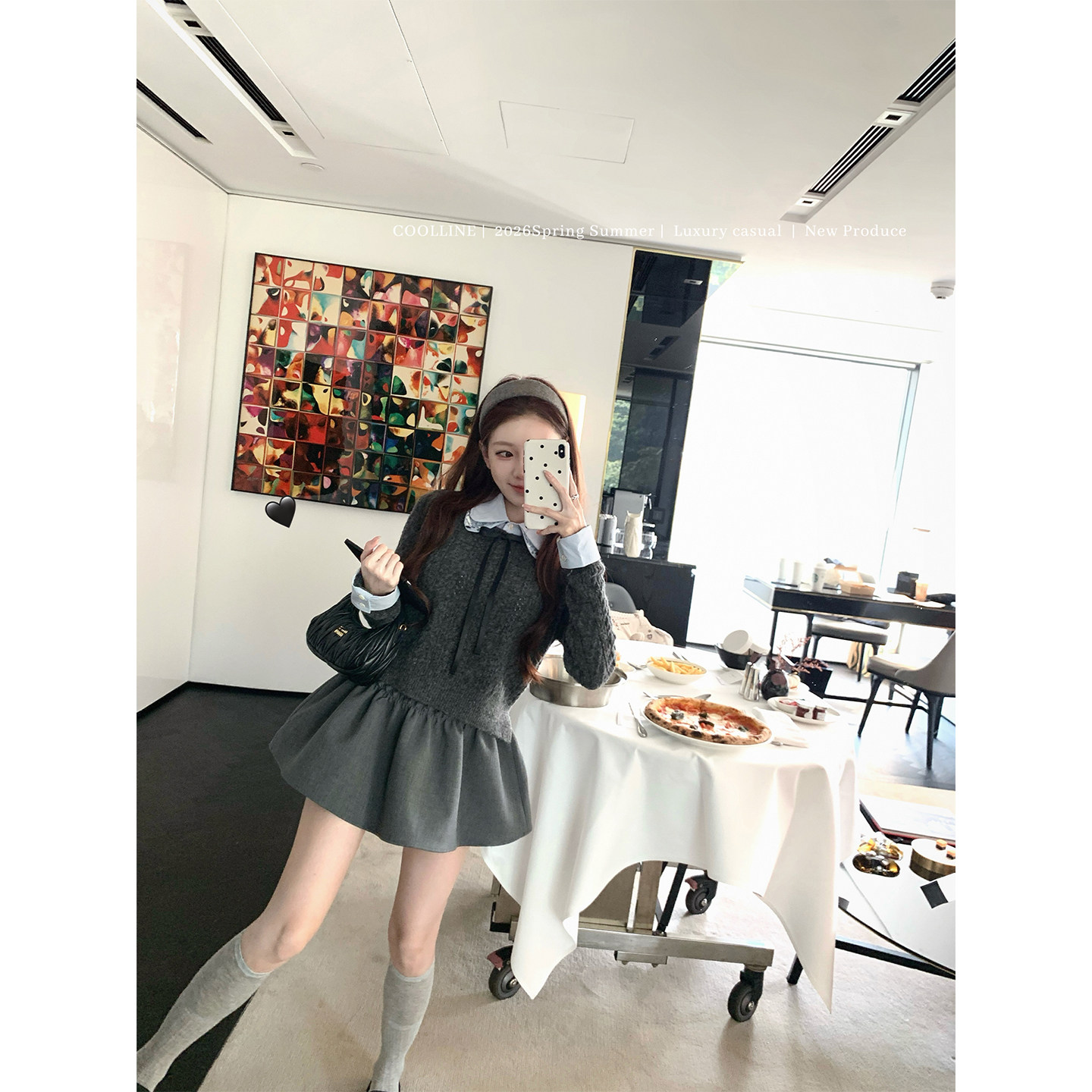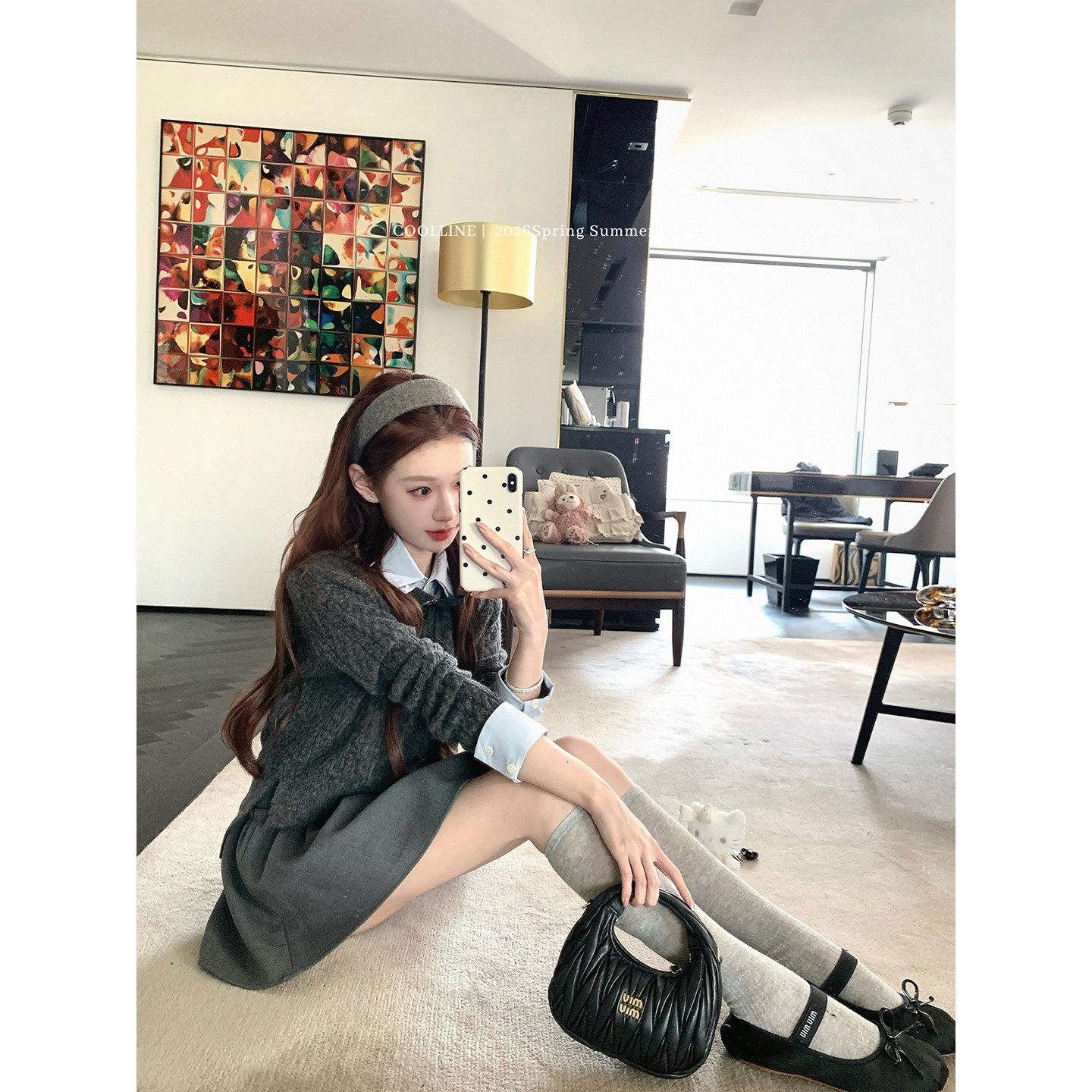拼接miu系蓝灰色学院感套装 亮片衬衫 女 格蕾猫语 COOLLINE林子熙