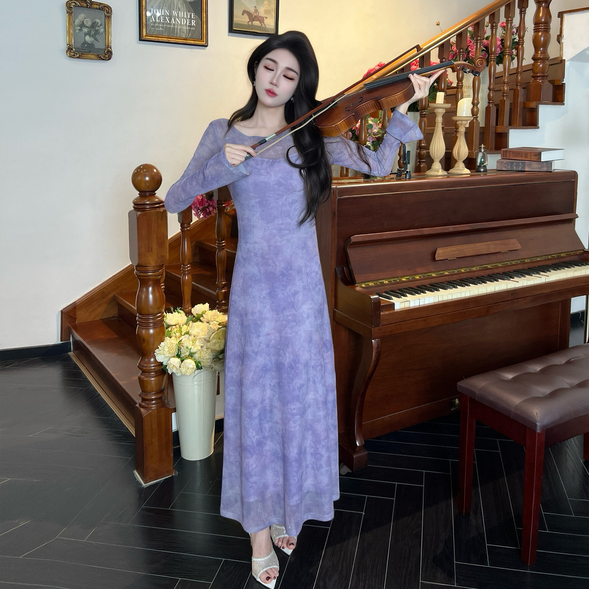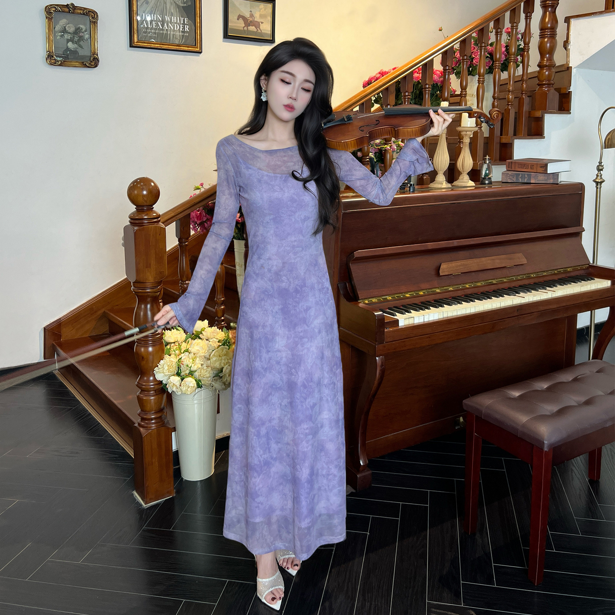 连衣裙气质女人复古紫色浪漫女装 裙长裙法式 256 长袖 2026春夏季